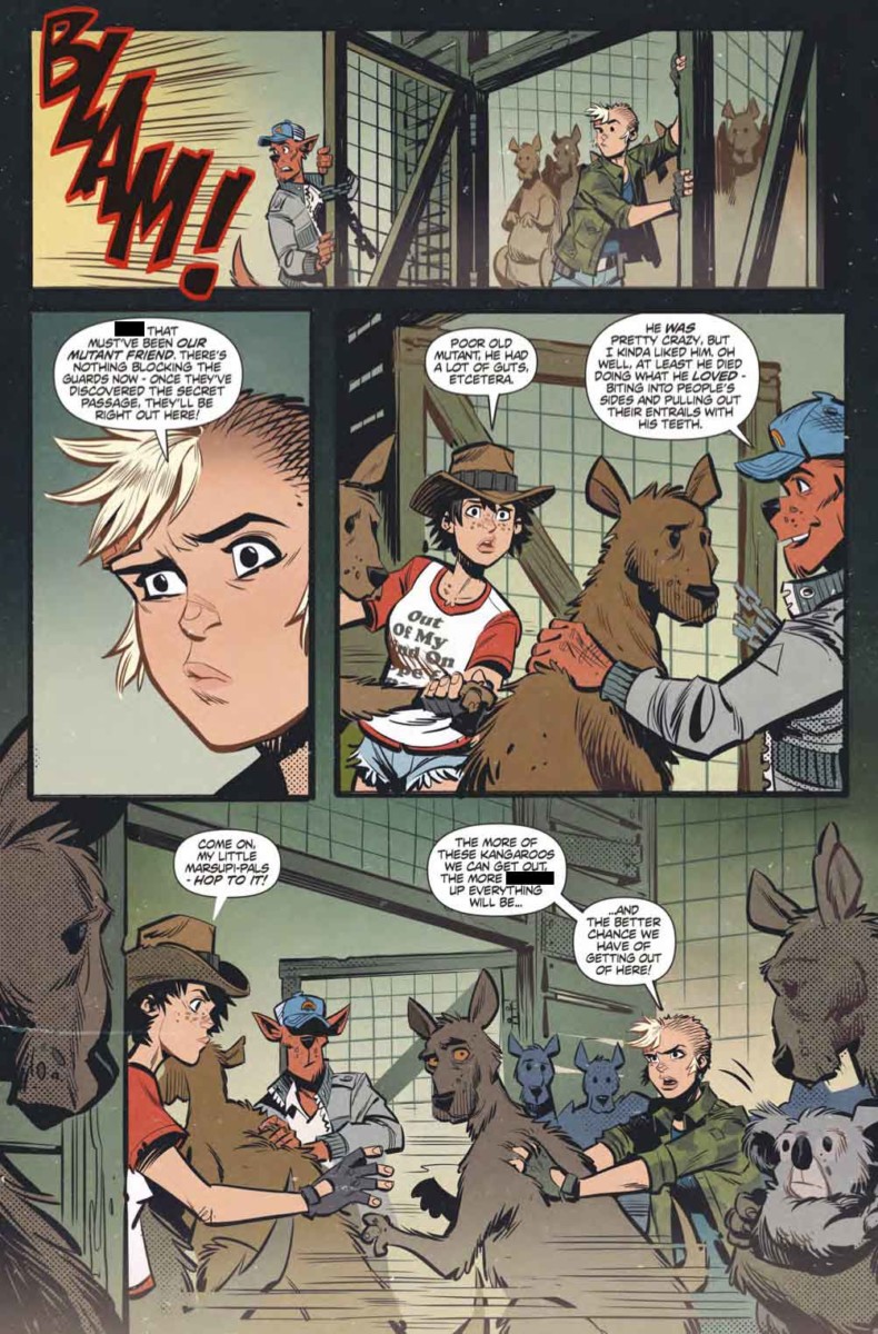 The explosive climax to Action Alley: the first arc of Tank Girl’s first ever ongoing series! The dark (maybe) and hilarious (definitely) secret behind Booga’s origins as a talking mutant kangaroo are revealed at last, by co-creator Alan Martin and fan-favorite artist Brett Parson!