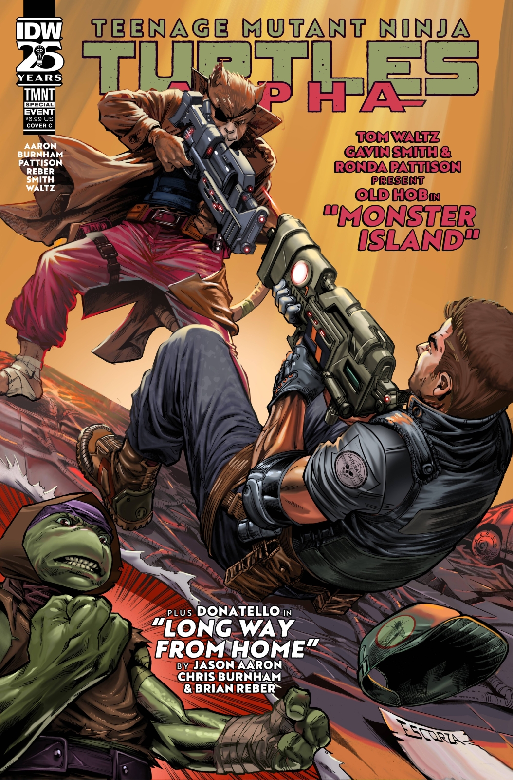 What’s the world like without the TMNT? Since their time-spanning victory over Armaggon, the Turtles have started to pursue other interests, leaving a void in New York among humans and mutants alike. This special issue explores the effects this change has on those connected to the brothers, from Old Hob to Jennika, across the five boroughs and all the way through Mutant Island. It’s hard to tell how important someone is until they are gone. And who better to write such a story than Tom Waltz, the man who scripted the first 100 issues of IDW’s series and the co-writer of The Last Ronin, and resign TMNT artist Gavin Smith!