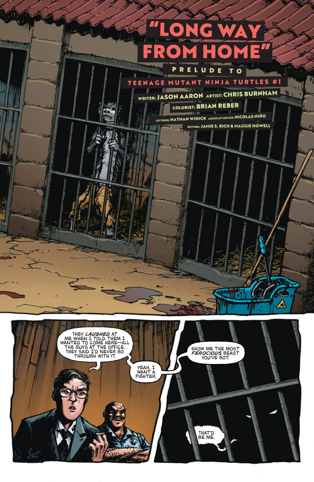 Also, get your first glimpse of what is coming in a special prequel to the new TMNT #1, written by superstar scribe Jason Aaron (Scalped, Batman: Off-World) and drawn by white-hot artist Chris Burnham (Batman, Inc., Die!Die!Die!). Donatello has had a hard time since he came back from the future, and he’s found himself in an unexpected place.