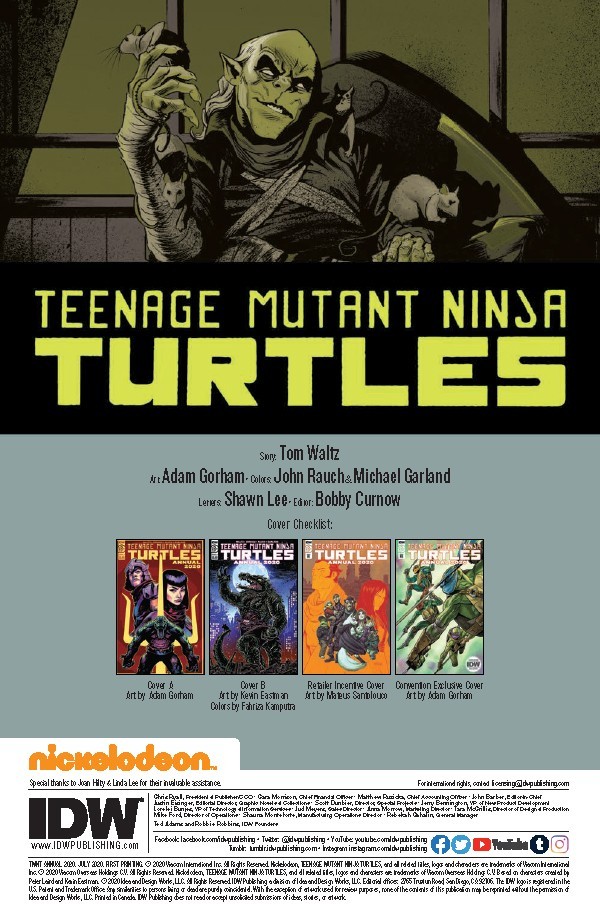 Teenage Mutant Ninja Turtles Annual 2020 is out on Wednesday, July 29th.