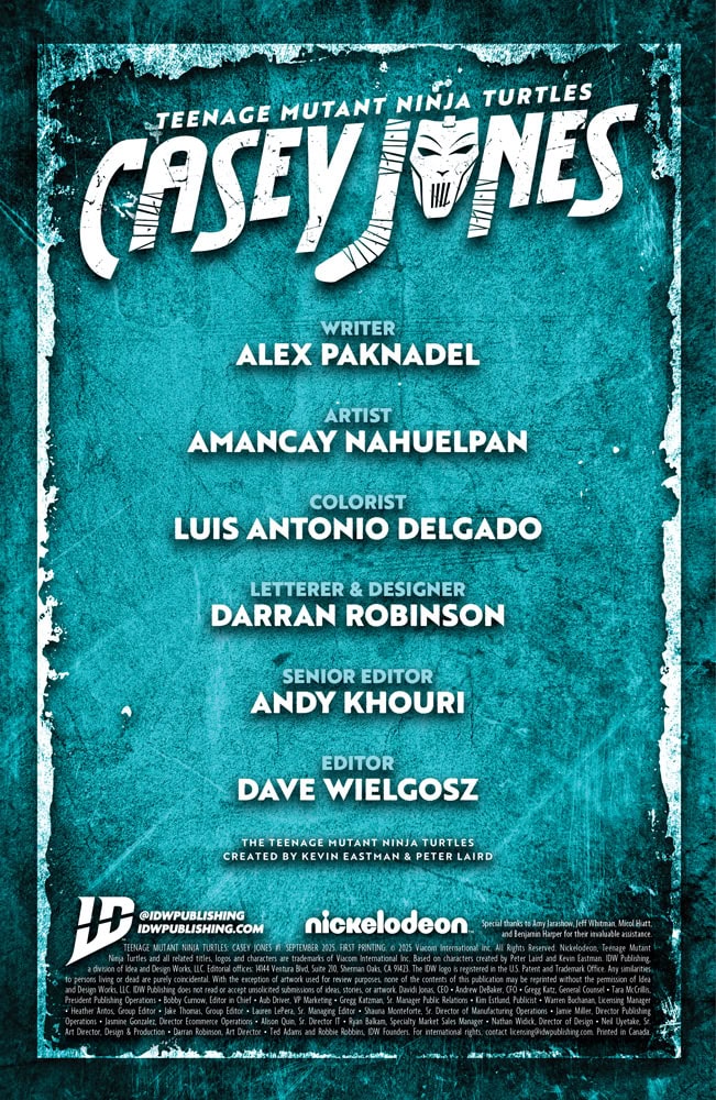 Teenage Mutant Ninja Turtles: Casey Jones #1 is out on Wednesday, September 17th.