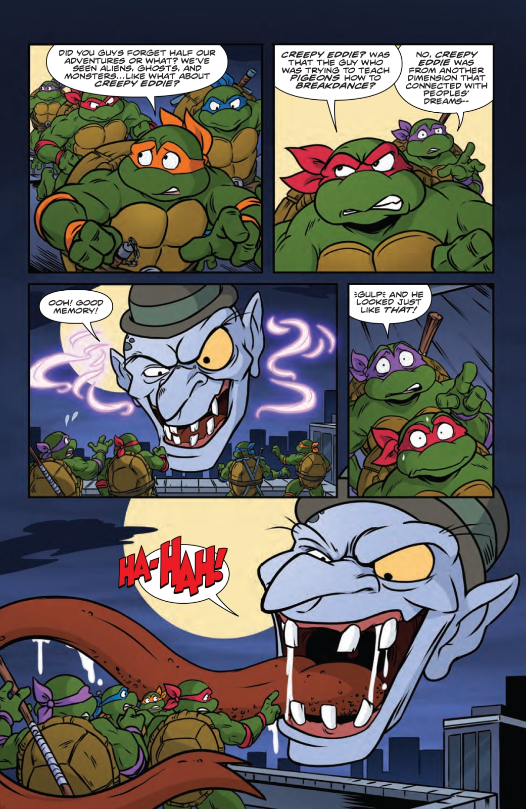 As Halloween approaches, the Teenage Mutant Ninja Turtles must face their fears when a powerful and mysterious being challenges them to prove their mettle in a nightmarish test of bravery. Meanwhile, Shredder has an otherworldly encounter of his own when he summons an ancient spirit to gain a greater understanding of the powerful weapon he seeks to reforge… only to discover that some forces are beyond even his control. Don’t miss this double-sized, spooky special of Saturday Morning Adventures!