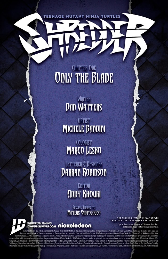 Returned forever changed by a maddening ordeal beyond imagining, the Shredder is a man out of time, betrayed by all around him, without the Foot Clan, and quite possibly insane. When one of his former Foot prodigies forms their own rival clan with infernal designs on New York, a recovering Shredder must quest deep into the criminal underworld, where enemies both old and new will discover what defiance will bring them at the end of the Shredder’s blades.