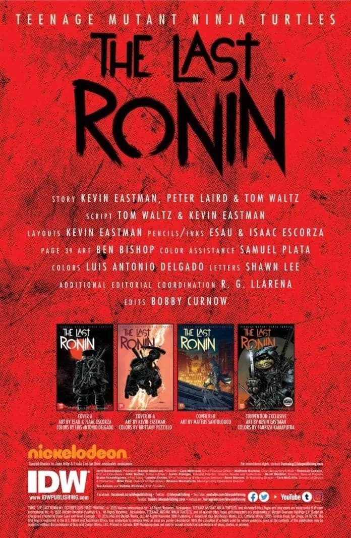 Teenage Mutant Ninja Turtles: The Last Ronin #1 goes on sale on October 28th, priced $8.99.