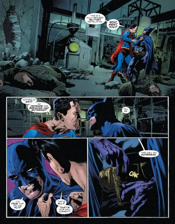 A cloud of fear has settled over the city, and the Scarecrow has the people of Gotham right where he wants them. Jim Gordon will take the fight right to Scarecrow’s seat of power… City Hall! But will Gordon have to challenge him on his own? Where’s the Bat-Man? The Dark Knight has found himself staring down a power unlike any he’s ever seen: a man of unlimited strength. A superman. And he has a lot of questions for the Caped Crusader. Will these two find common ground in time to thwart the Scarecrow and Hangman’s endgame?