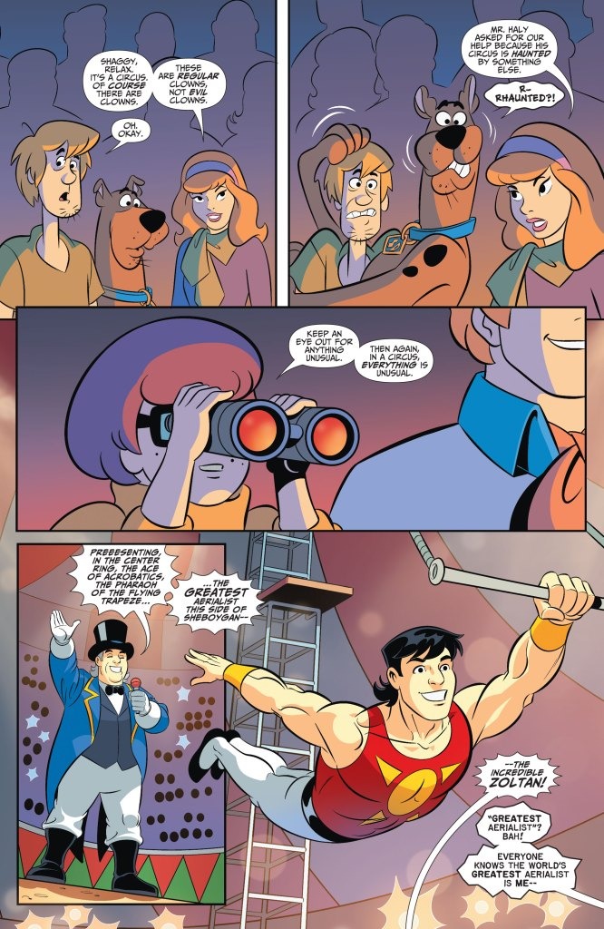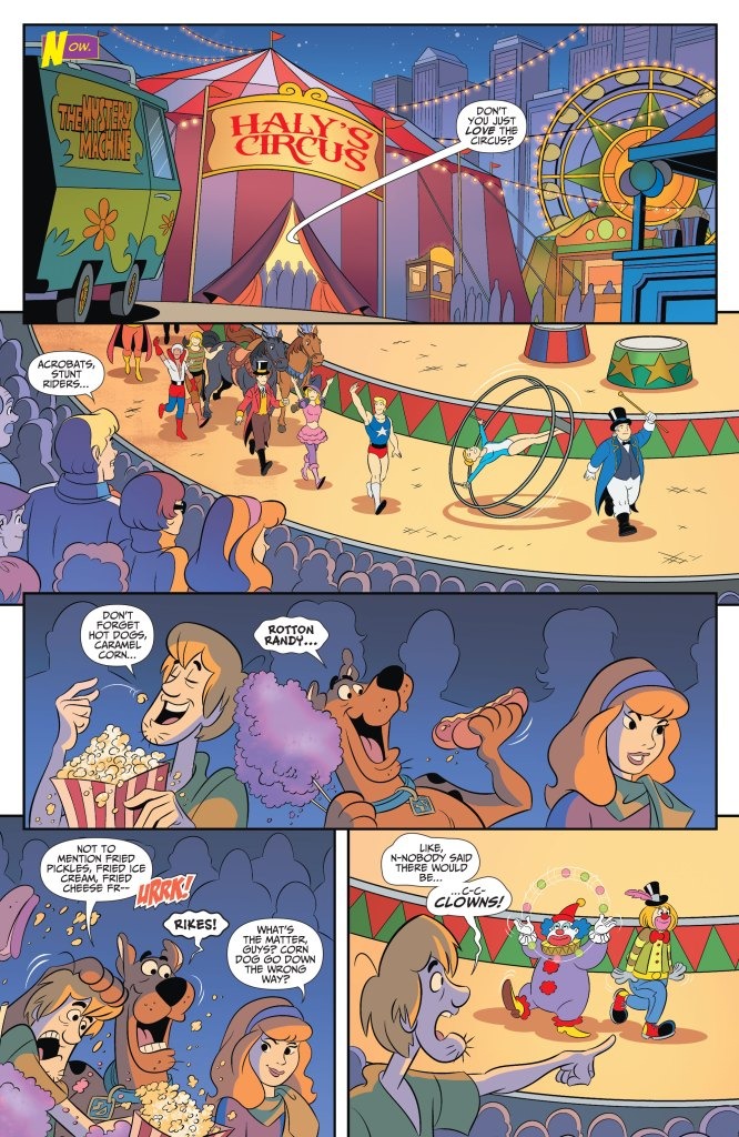 A new ongoing series teams up Gotham’s greatest detectives with Crystal Cove’s teen sleuths! The big top’s the place for thrills and chills—even more so when a traveling circus is haunted! But even Scooby and the gang don’t realize just how chilling it is for Nightwing… because this is Haly’s Circus, Dick Grayson’s childhood home!