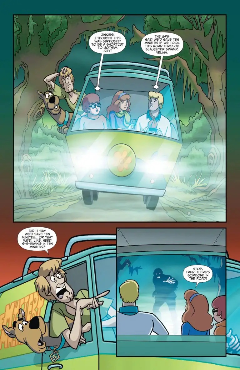 Come to Slaughter Swamp and get a selfie with Solomon Grundy! For the adventure tourism crowd, that’s a potent lure, and there’s a real estate developer who has big plans…and a lot of swamp to profit from! Will Batman and the gang from Mystery Inc. figure out what’s going on in time to save some Gothamites from a zombie disaster?