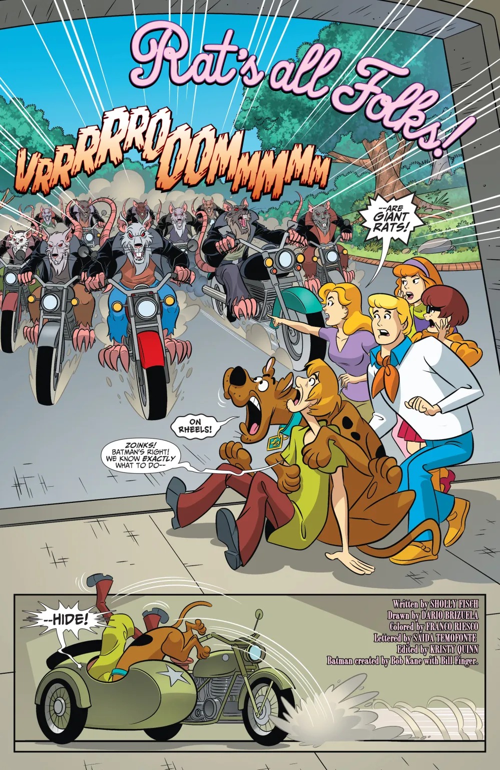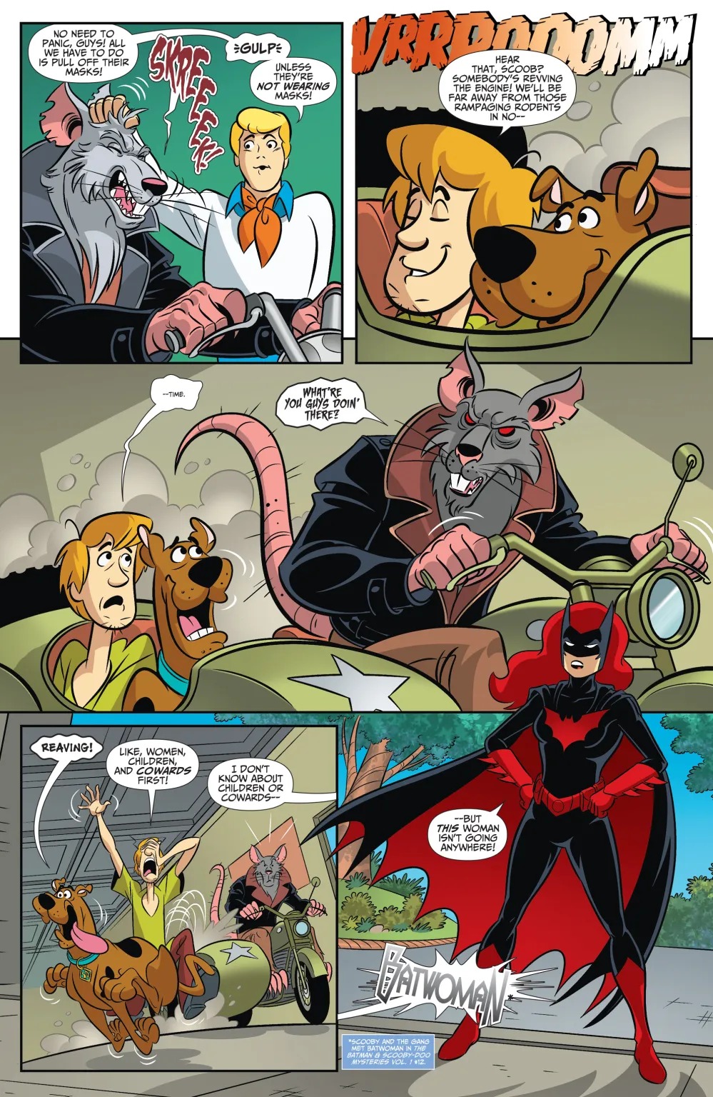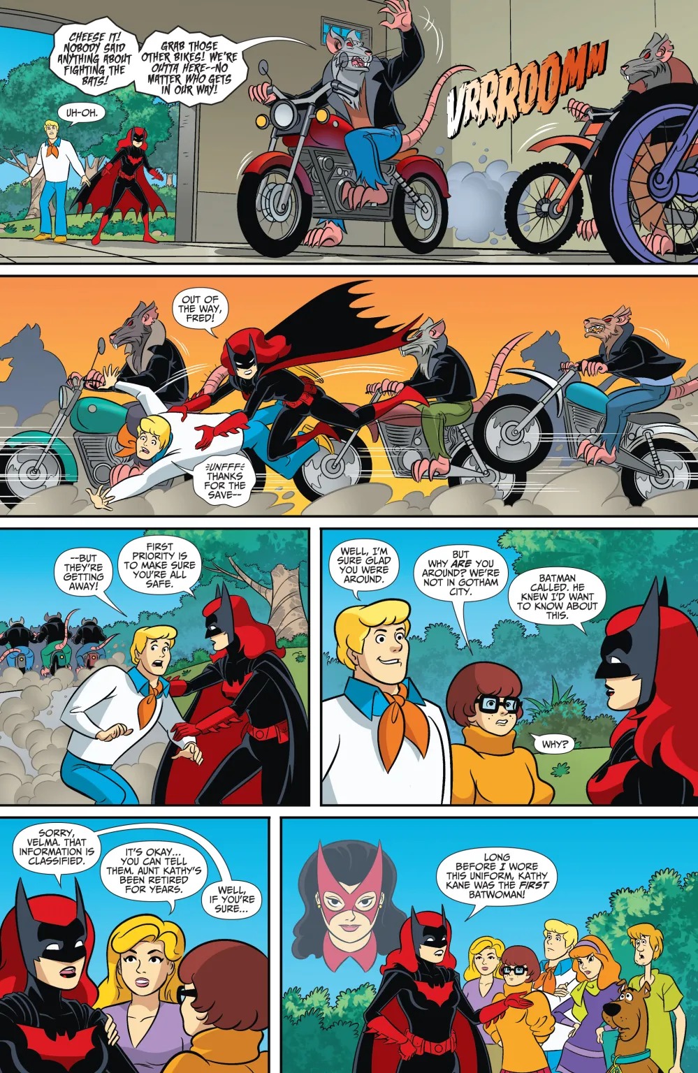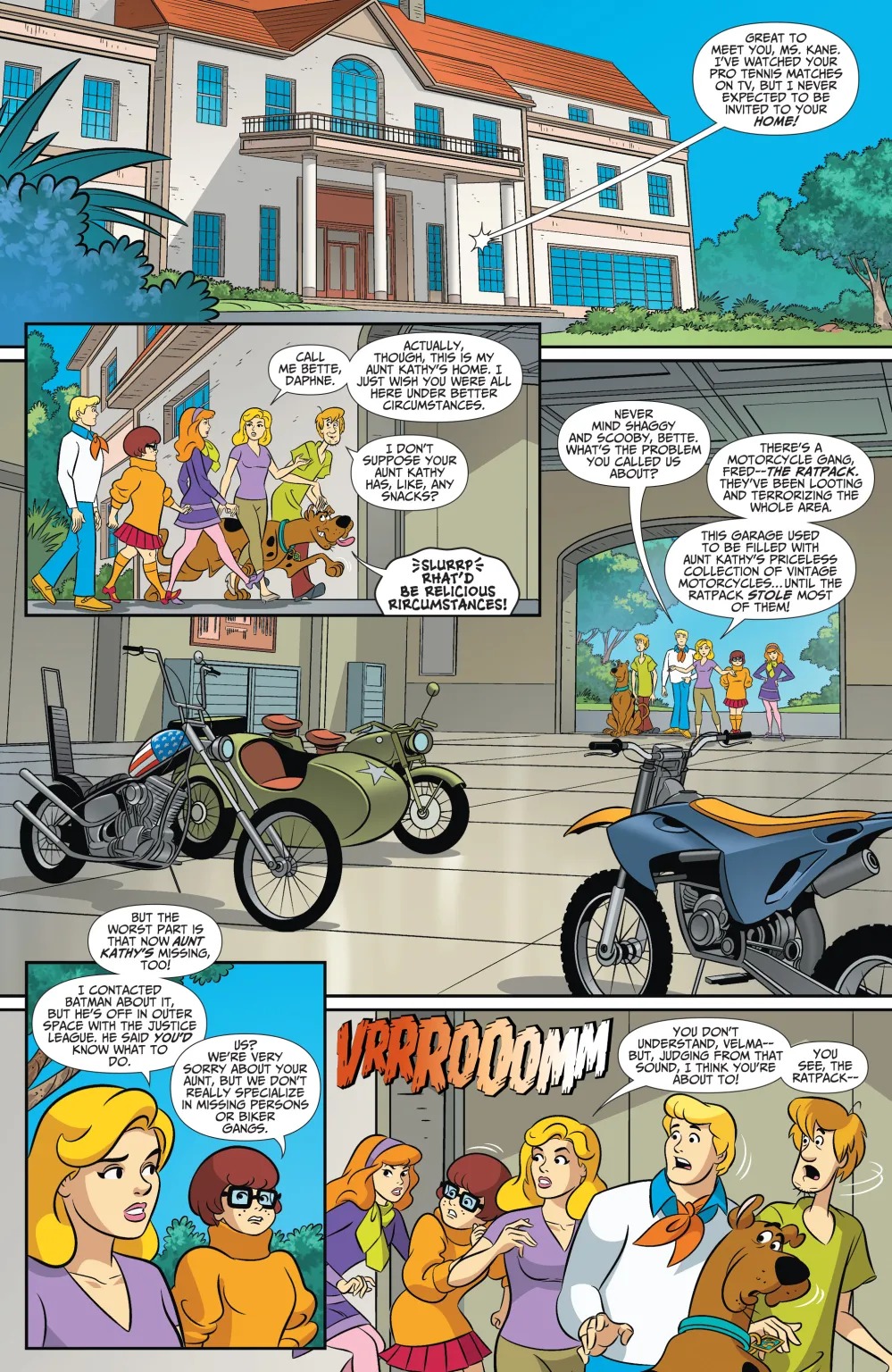 Pro tennis player Bette Kane asked Batman for help, and Mystery Inc. is coming to Gotham to join the search for a priceless collection. She has snacks, so Shaggy and Scooby are on board…at least until they hear that they’re chasing a pack of motorcycle-thieving rat people!