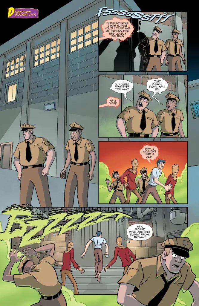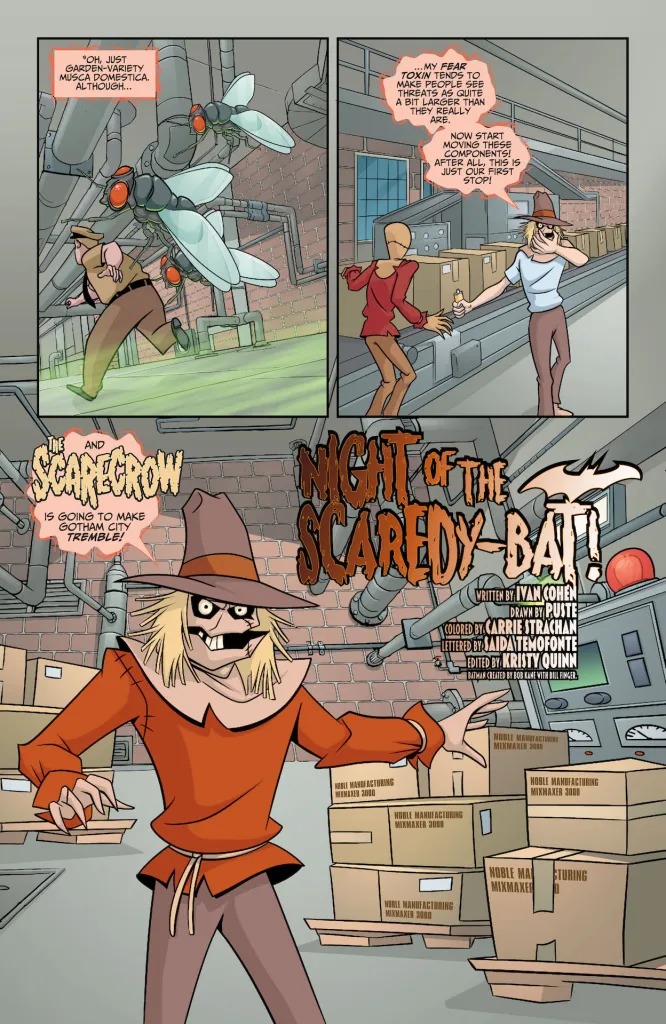 The Scarecrow’s new fear toxin has Gotham City too frightened to function! Batman and Mystery Inc. are able to put off the inevitable for a while as they investigate, but soon they fall victim as well — except for Shaggy and Scooby-Doo, who seem weirdly immune. It turns out that always being scared has some advantages, after all!
