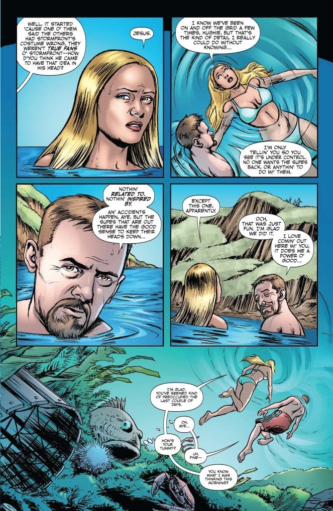 Hughie fills Annie in on some of the CIA’s anti-supe tactics in the years since the Boys were last around, but she has some pressing questions of her own. As Butcher finds himself in a sticky spot with the Children of Stormfront, he realizes Becky’s influence is a good deal harder to escape than he’d thought.