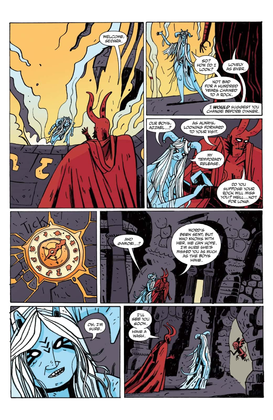 Deep within Castle Azzael, a new crown is being forged in secret for a potential king — sparking treachery and backstabbing among Hellboy’s father, uncle, and half-brothers, each vying for control of Satan’s dormant throne.