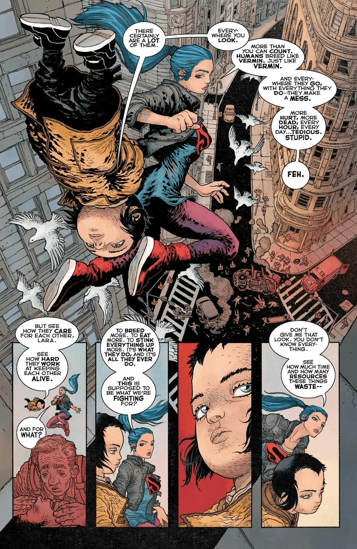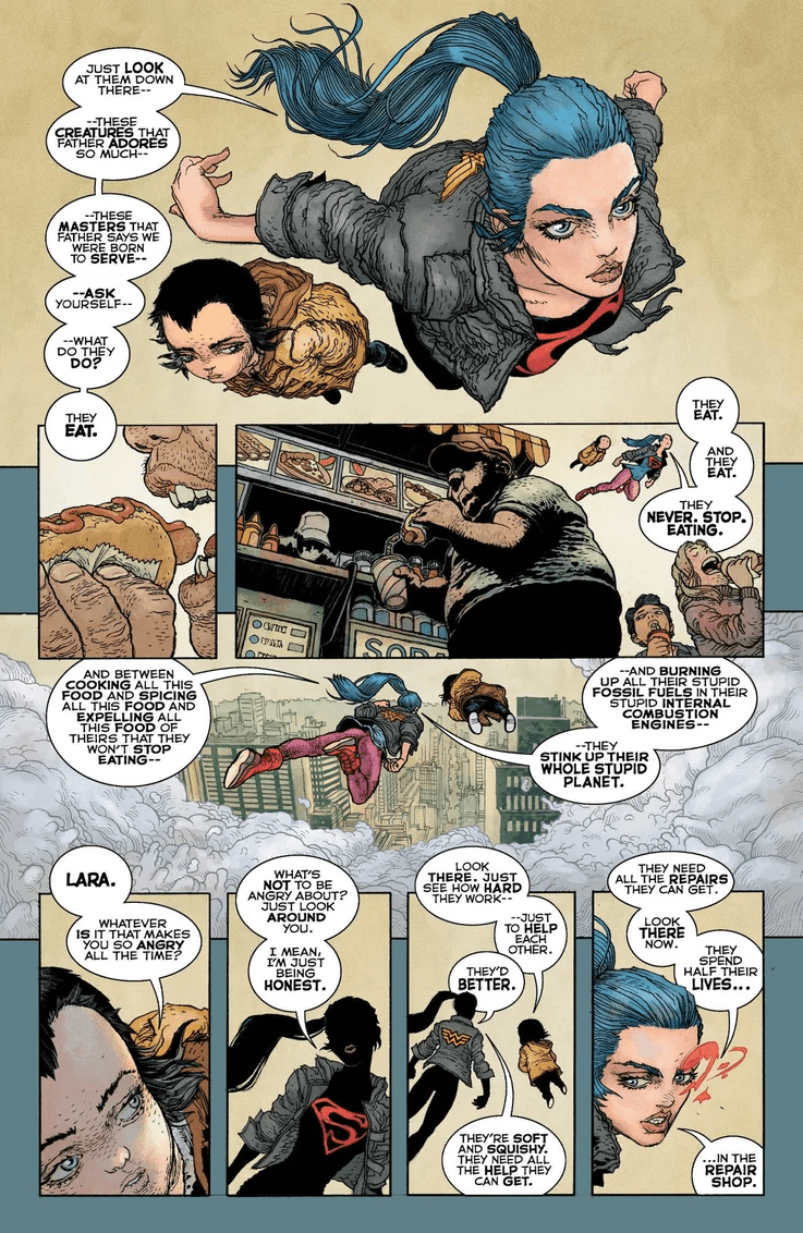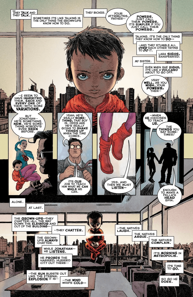 It’s been three years since the events of Dark Knight III: The Master Race. Lara has spent the time learning to be more human, and Carrie Kelley has been growing into her new role as Batwoman. But a terrifying evil has returned to Gotham City, and Lara and Carrie must team up to stop this growing threat—and they have a secret weapon. Young Jonathan Kent, “the golden child,” has a power inside of him unlike anything the world has ever seen, and it’s about to be unleashed…