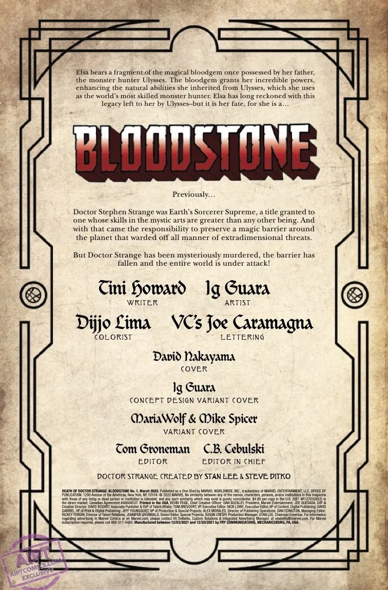 Filed Under: Amie Cranswick, Comic Book Previews, Comic Books Tagged With: Bloodstone, Doctor Strange, Marvel, The Death of Doctor Strange, THE DEATH OF DOCTOR STRANGE: BLOODSTONE