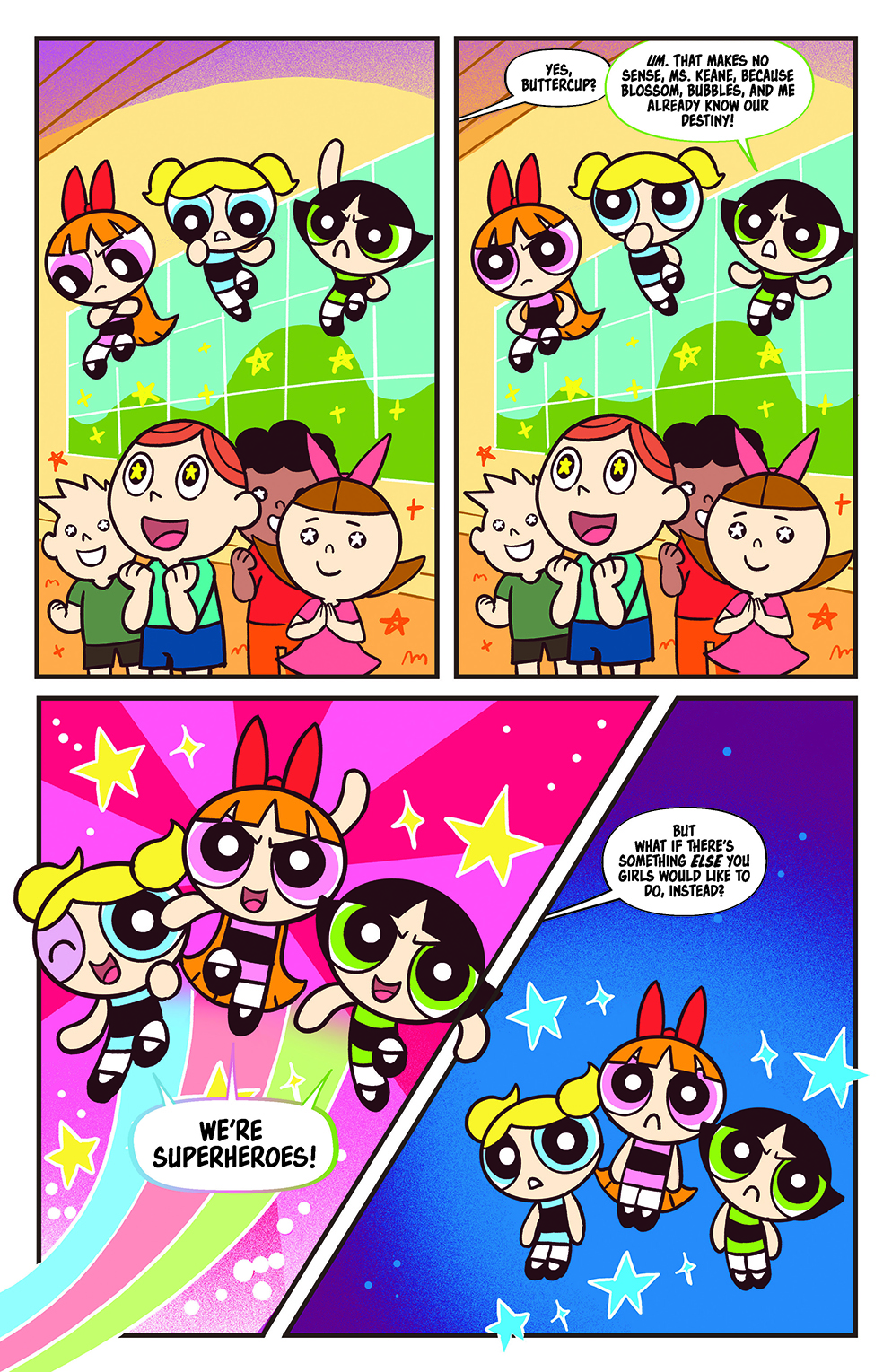 Since that fateful day, BLOSSOM, BUBBLES, and BUTTERCUP have dedicated their lives to fighting evil in every form — tirelessly defending their idyllic city from petty criminals, destructive monsters, and diabolical super-villains alike.