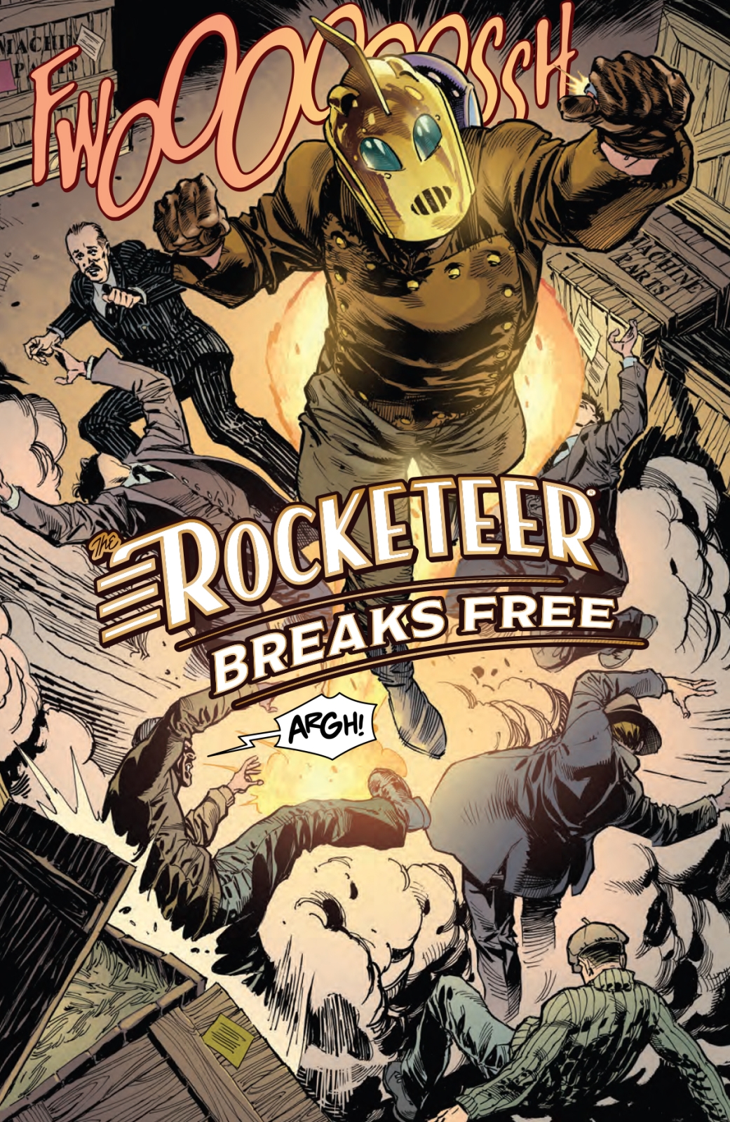 The Rocketeer storms the City by the Bay!With Betty about to start work on a new film, Cliff and Peevy join the aspiring starlet on a trip to San Francisco, where they liaise with fellow pilot and friend (and government operative) Debbie Seville. As always, trouble seems to follow Cliff, who gets caught up in a cable car accident! But at least it’ll be all smooth sailing after that, right? Not if the Rocketeer’s luck stays true to form!