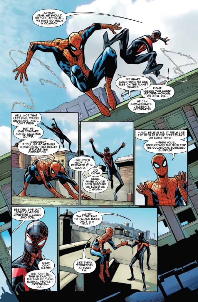 The Spectacular Spider-Men #1 swings into comic shops and digital retailers on Wednesday, and you can take a look at the official preview of the issue below courtesy of Marvel Comics…