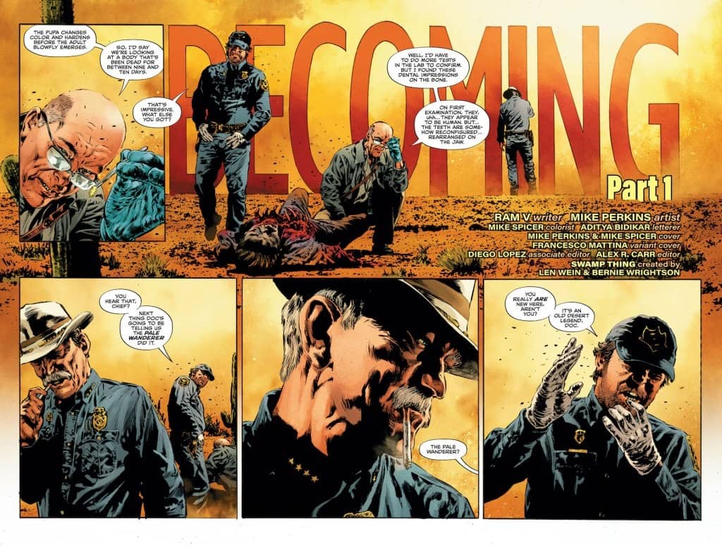 Swamp Thing returns in a new 10-issue series that stars Levi Kamei as the next Guardian of the Green. Unable to control his transformation into the monstrous Swamp Thing, Levi is thrust into the harsh, unforgiving mystery of grisly murders committed by a supernatural desert legend. Levi must revisit past events in his homeland of India and face the deadly reality of a ravenous new villain in order to comprehend what he is truly, and horrifyingly, becoming. A new era of global action and horror blossoms here, and Swamp Thing will be at the root of it!