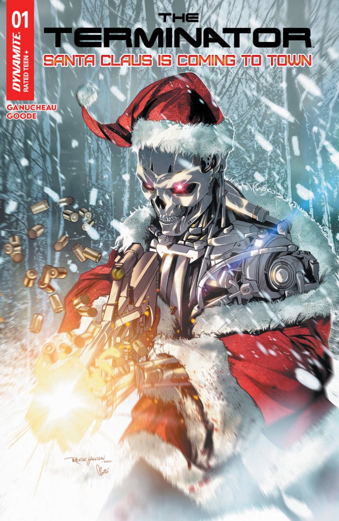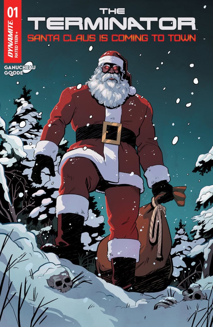 Get ready to deck the halls with phased plasma rifles as relentless comics machines PAULINA GANUCHEAU and KENDALL GOODE celebrate the most wonderful time of the year in The Terminator: Santa Claus Is Coming to Town — featuring seasonal cover wrappings from GOODE, WILL ROBSON, FRANCESCO BIAGINI, and REESE HANNIGAN!
