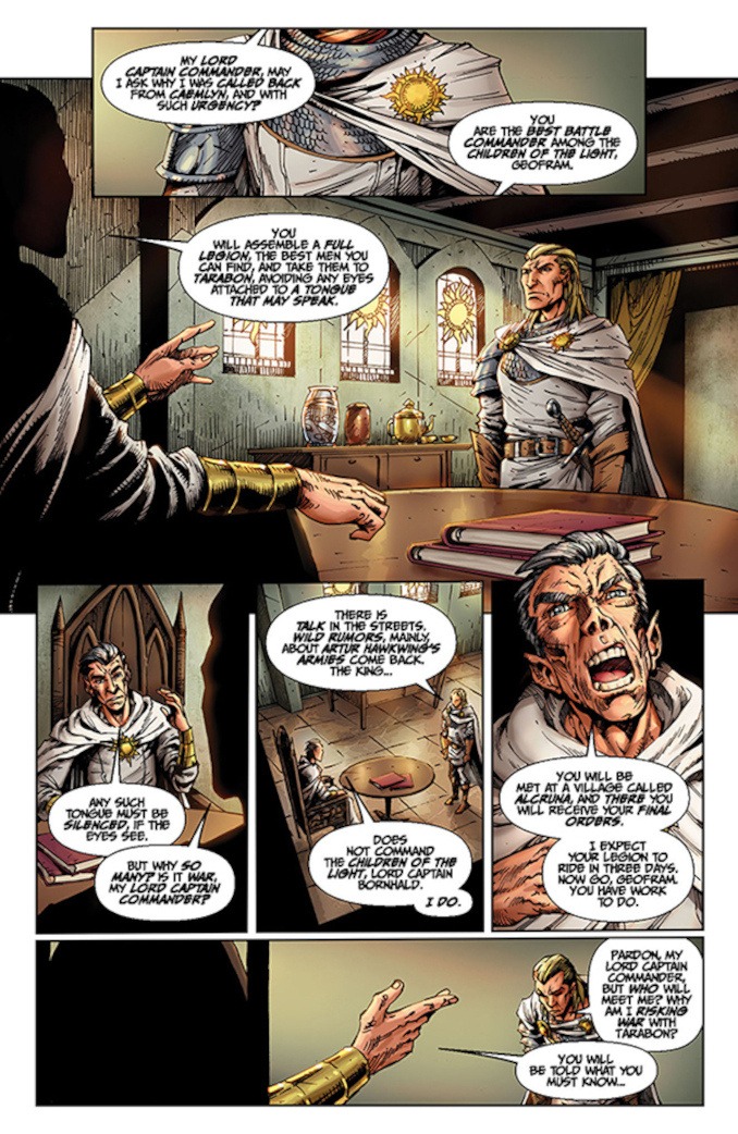 In Chapter 2, “The Flame of Tar Valon,” Rand and his mentor Lan train in Fal Dara with a mysterious heron-marked sword – a weapon whose shadowy origins raise questions about Rand’s own heritage. But even as the Dark One steps up his search for the reborn Dragon, Rand faces a different challenge in the form of two thousand Children of the Light approaching Fal Dara. What will the young hero do against the fiery might of The White Tower? And what will happen if the Dark One’s Forces find him first? Grab this issue of The Wheel of Time: The Great Hunt from writer RIK HOSKIN and artist MARCIO ABREU and find out!