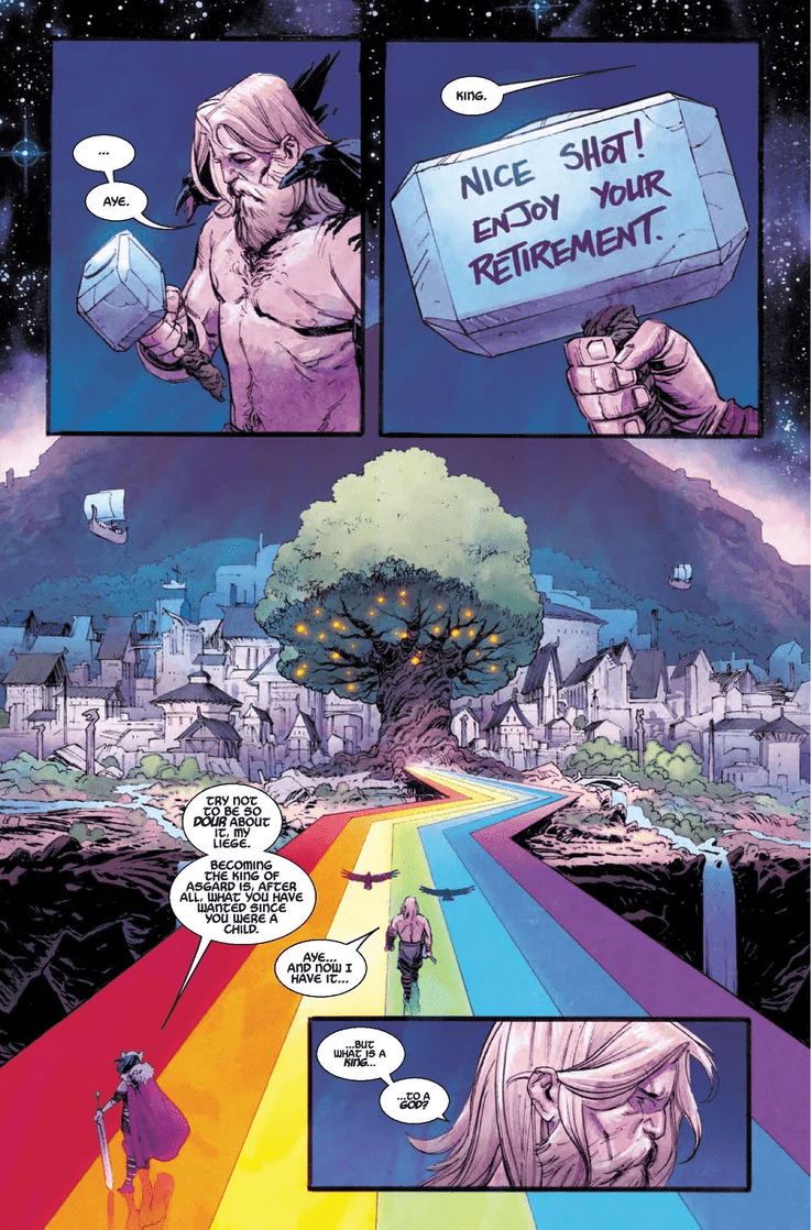 A BRAND-NEW, SUPERSTAR CREATIVE TEAM TAKES THE KING OF ASGARD TO NEW REALMS OF GLORY! The prince is now a king. All Asgard lies before Thor, the God of Thunder. And after many months of war, the Ten Realms are finally at peace. But the skies above the Realm Eternal are never clear for long. The Black Winter is coming. And the God of the Storm will be powerless before it.