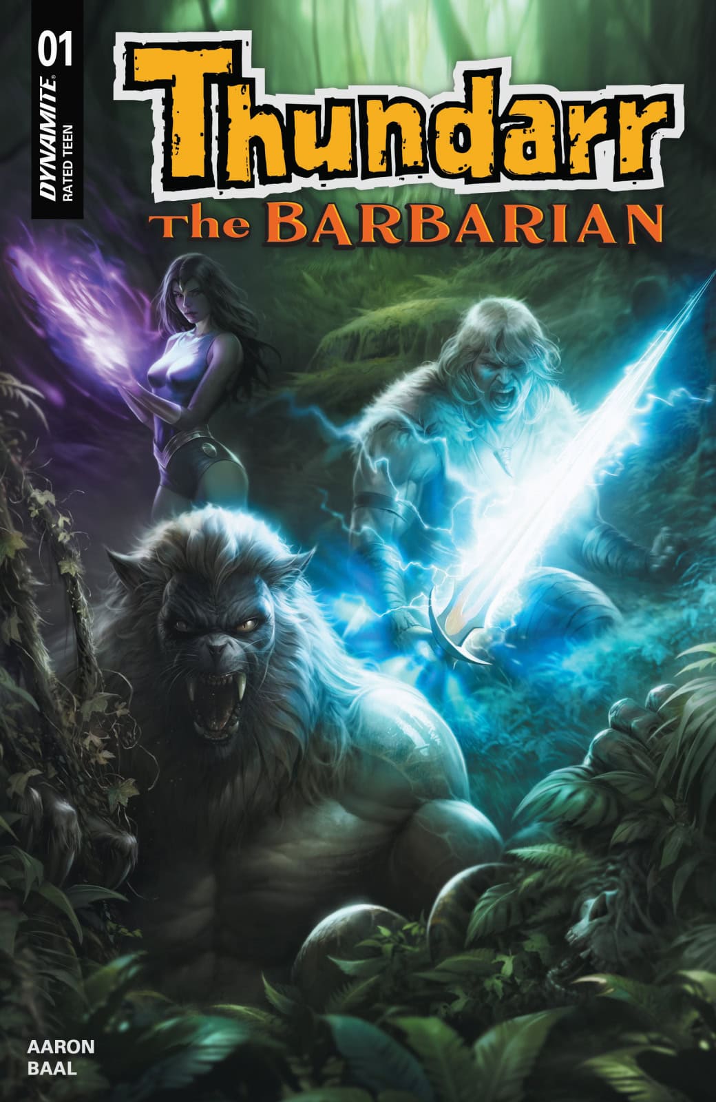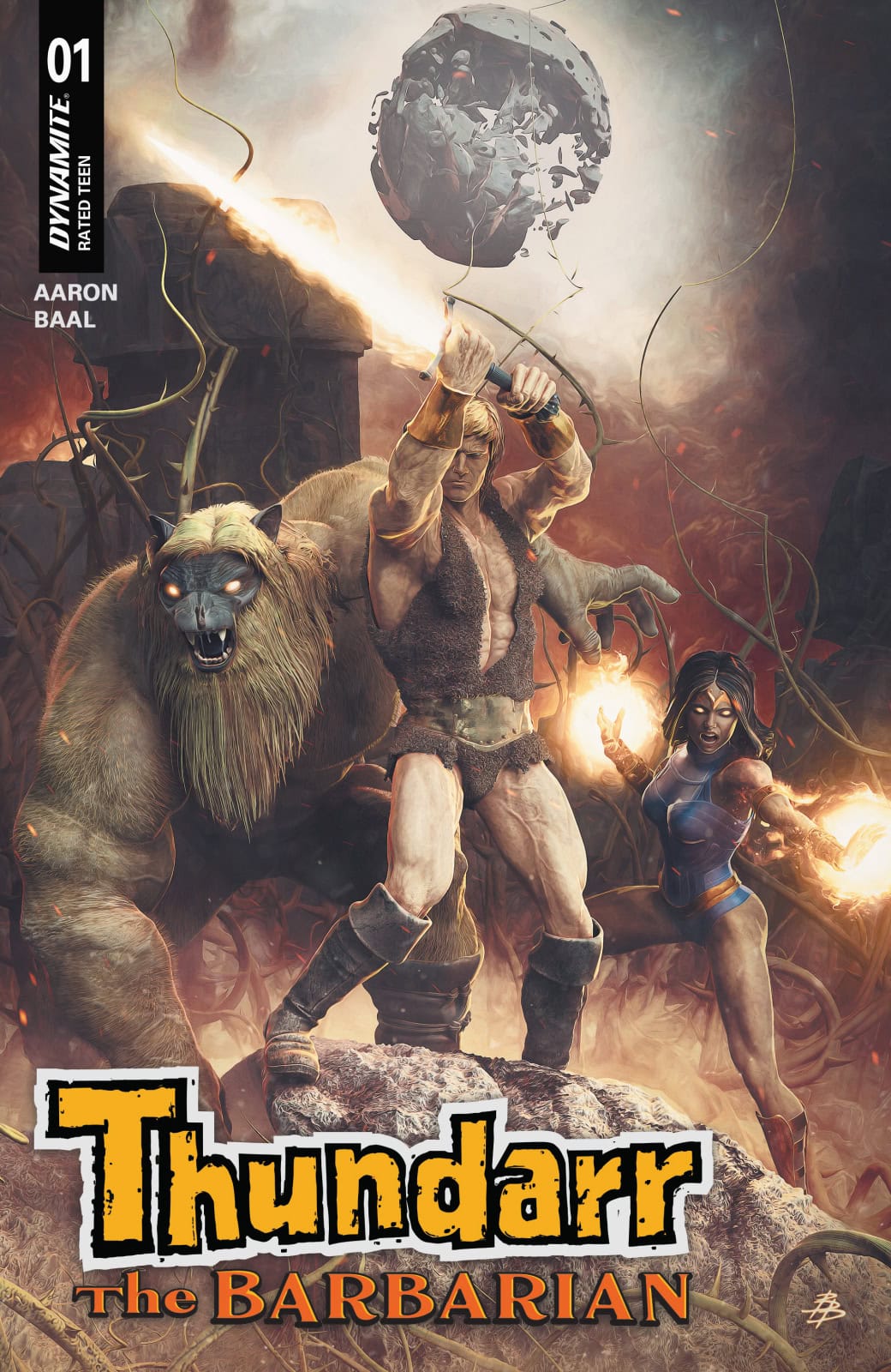 Visionary comics author JASON AARON (Thor, Avengers, Conan) and acclaimed artist KEWBER BAAL (Vampirella, James Bond) return to the halcyon days of Saturday morning TV in the Dynamite debut of Thundarr the Barbarian, bringing with them all-new tales of the origins of the heroic trio and their ongoing battles against the corrupt forces that dominate their strange new world!