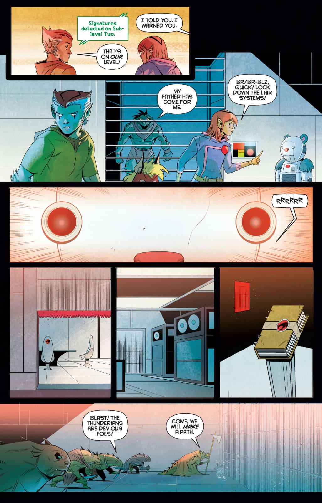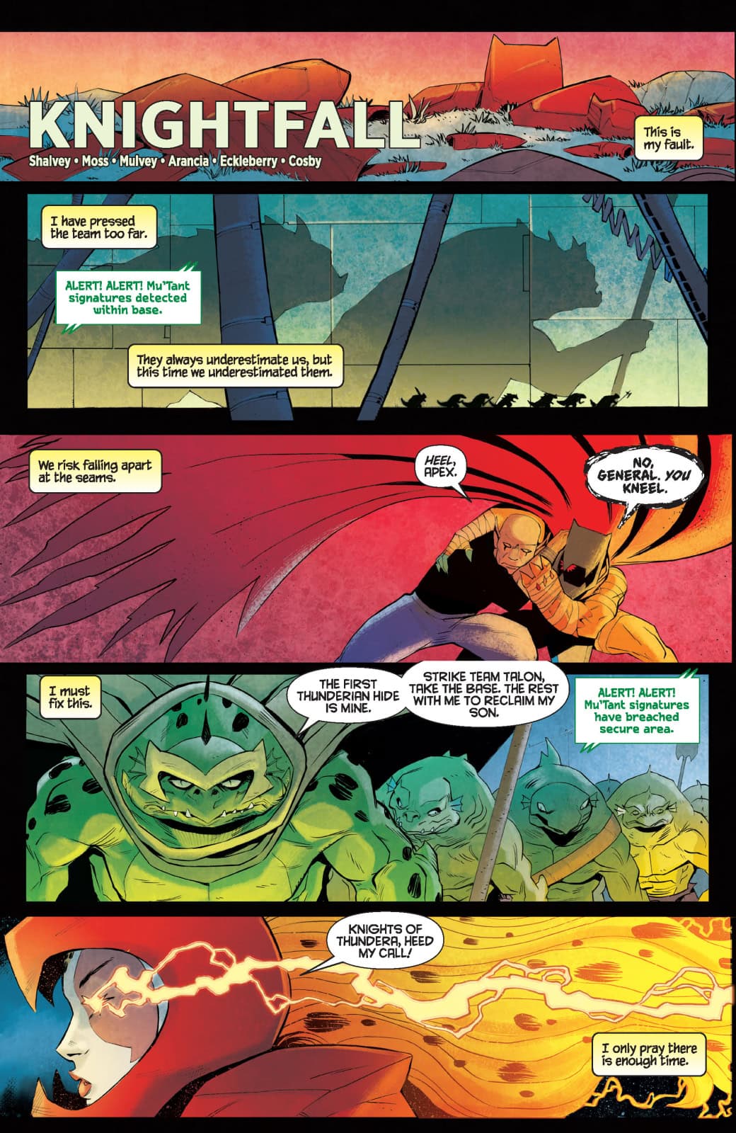 In this electrifying issue, the escalating clash of wills between the ThunderCats of the Cat’s Lair and the Knights of Thundera finally comes to a head — and the ultimate destiny of all the Thunderans on Third Earth hangs in the balance!
