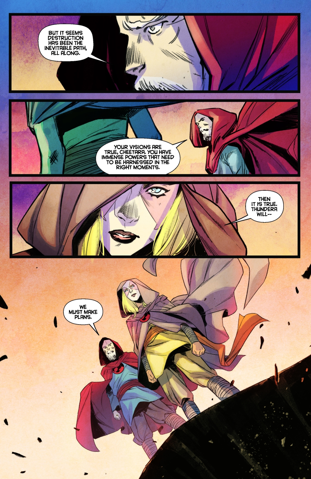 With her visions of a potential apocalypse becoming ever clearer as the years wear on, Cheetara sets herself to preparing with Jaga as best they can for the challenges that lie ahead — all the while knowing that the ultimate hope of Thundera and the destiny of its young leader-in-waiting depend on her.
