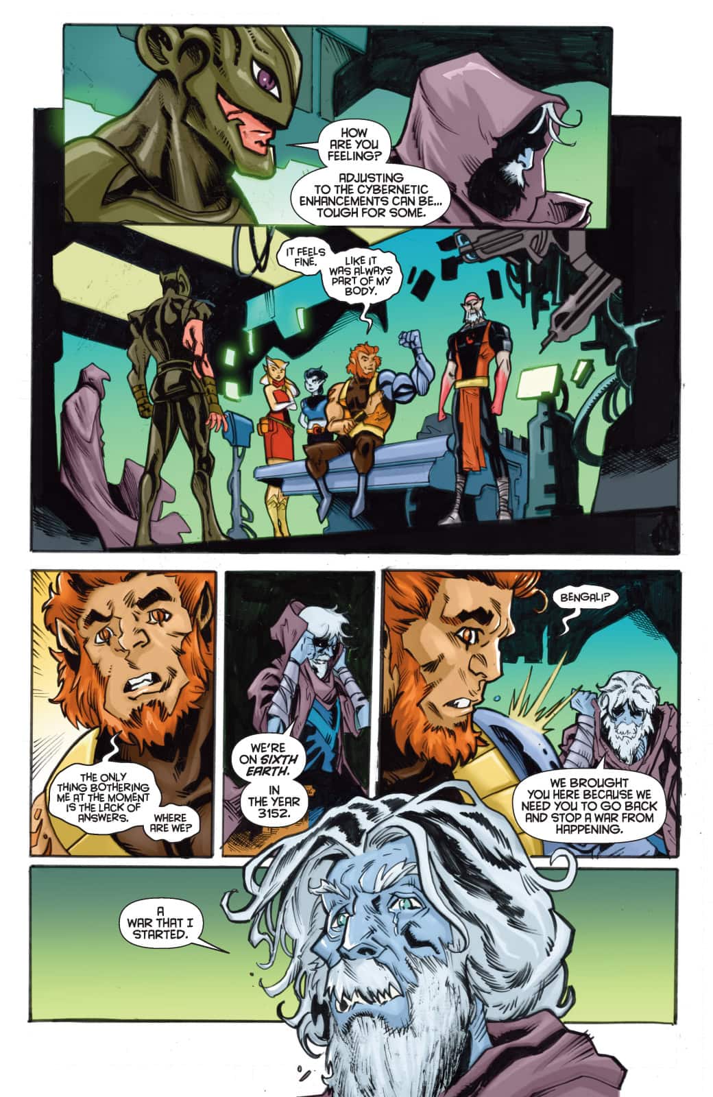 THE FUTURE ISN’T WHAT IT USED TO BE! Ripped from their adopted home of Third Earth, the ThunderCats Pumyra, Neko, Lynx-O, and Ligon find themselves trapped on the distant future world of Sixth Earth – a broken, dystopian planet ruled by a totalitarian police state, where cats are outlawed and hunted to the brink of extinction.