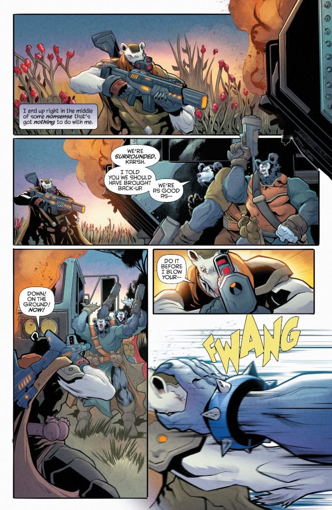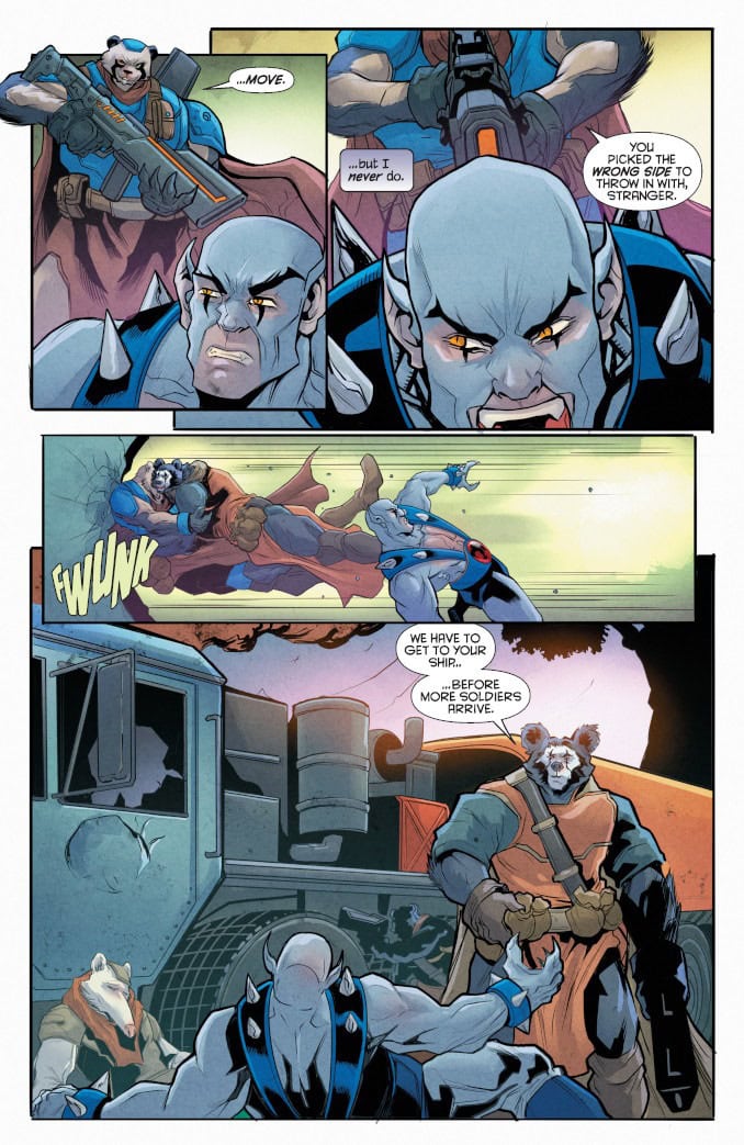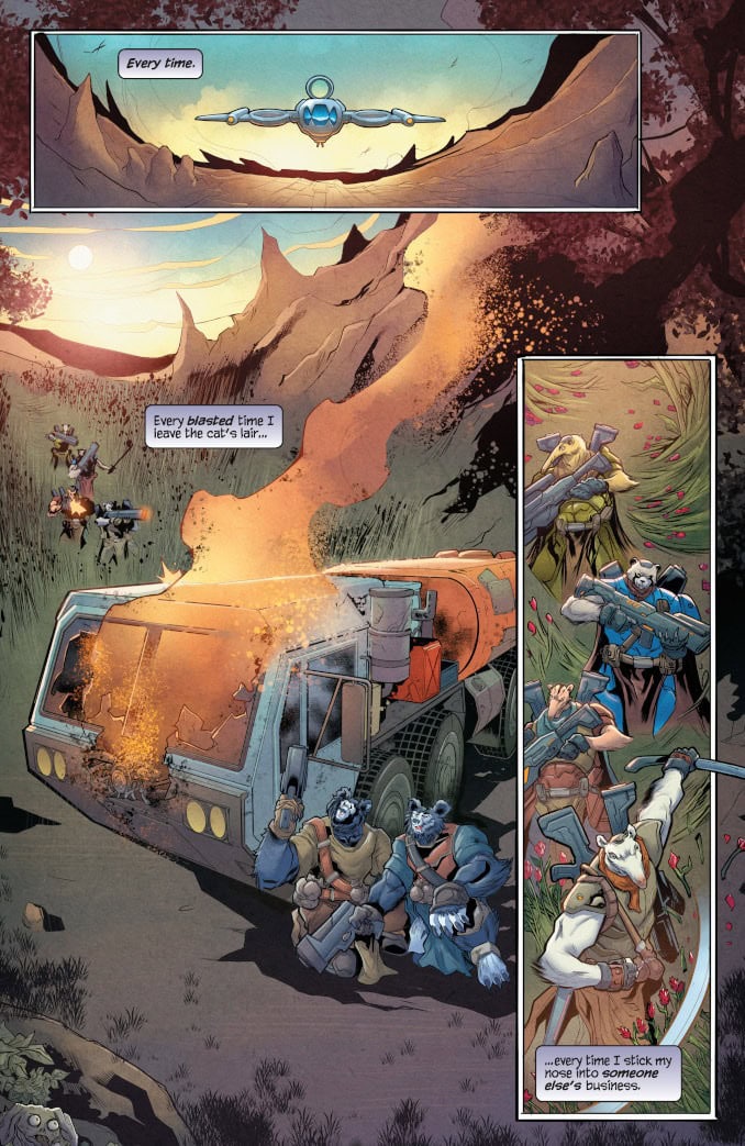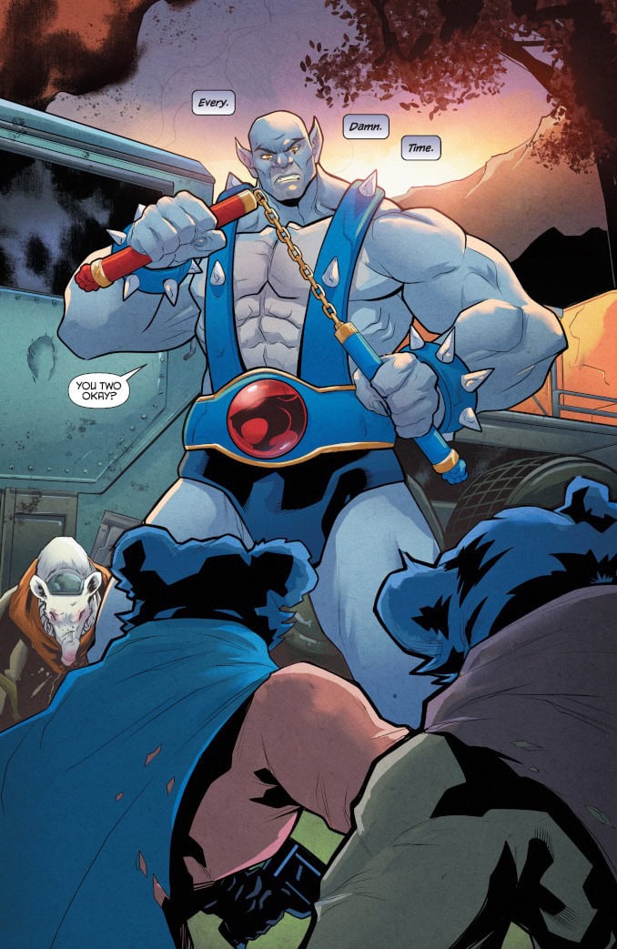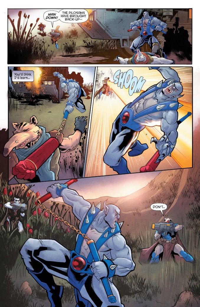 LOVE – AND THUNDER – ARE IN THE AIR! After setting out on a solo mission to explore the wilds of Third Earth, Panthro finds himself caught in the middle of an ancient battle between two rival warlords. Trapped in an endless cycle of violence, the feuding parties have been at each other’s throats for longer than anyone can remember – but as Panthro discovers, their enmity has been made all the more bitter because of what they used to mean to each other. Faced with an escalating conflict that could endanger the ThunderCats’ adopted home, Panthro must find a way to unravel a tangled web of old wounds and raw emotions and ignite a spark of reconciliation between the star-crossed commanders – before the bloodshed expands to cover all of Third Earth!