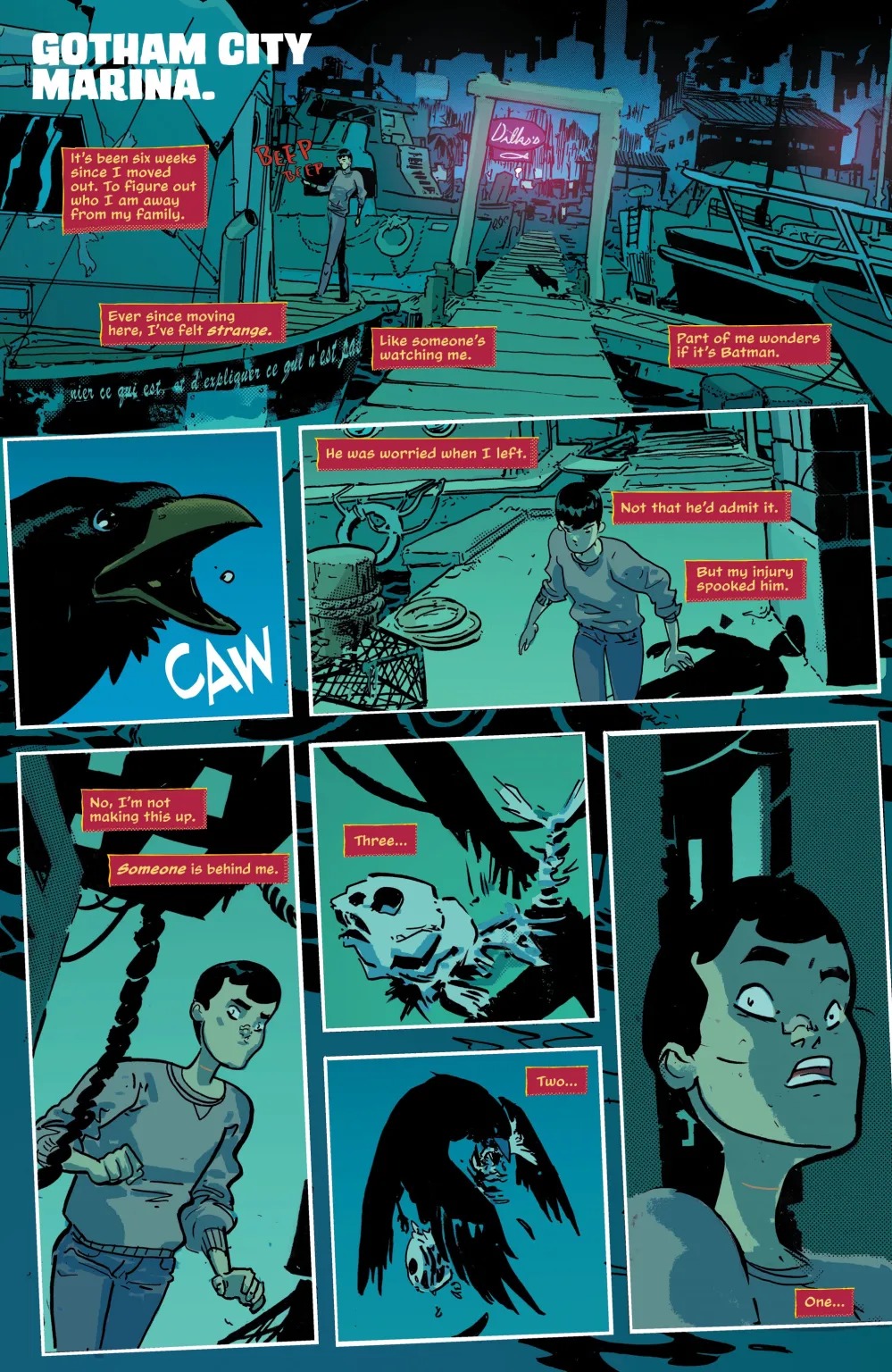 A mystery over a year in the making takes shape, as a new villain who’s been hounding Tim from afar decides to take things up close and personal, putting Bernard and everyone else Tim cares about in peril as things go from bad to worse for the world’s oldest and canonically tallest Robin (no, I will not be fact-checking that). All that and Tim finally carves out a corner of Gotham City just for himself, and sets up shop in his very own…murder shack boat? Fan-favorite writer Meghan Fitzmartin teams up with beloved Harley Quinn artist Riley Rossmo to define the next chapter in Tim’s life.