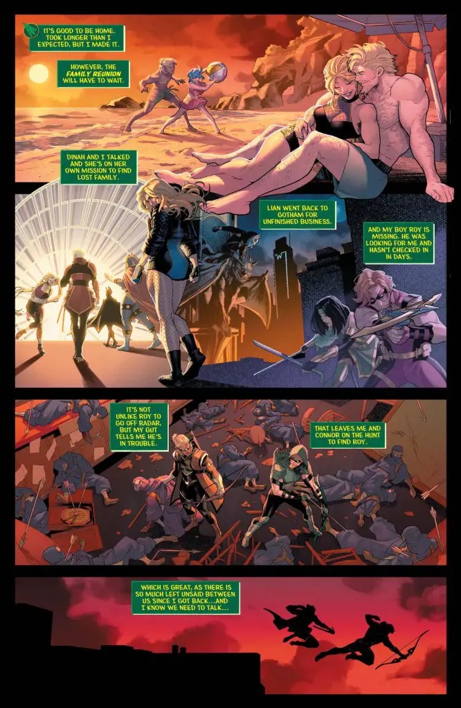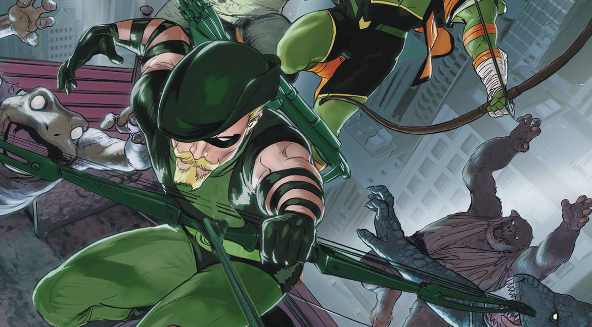 City of stars! Father-and-son archer duo Oliver Queen and Connor Hawke are reunited in the face of evil as they investigate rumors of harrowing experiments taking place at the city aquarium. Across town, Black Canary’s cry becomes lethal as she succumbs to the Beast Boy spores. Can the city’s newest hero, Red Canary, stand up to her idol? Plus, Red Arrow and Stargirl reunite to protect the city from…the Justice Society of America?!