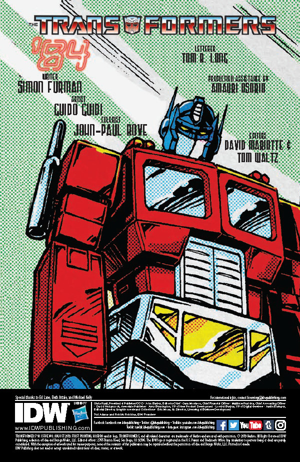 As part of the franchise’s 35th anniversary celebrations, the Transformers: Regeneration One team of Simon Furman and Guido Guidi reunite this week for Transformers 84 #0, a brand new prequel to the original Transformers #1 from 1984; check out a preview here courtesy of IDW Publishing…