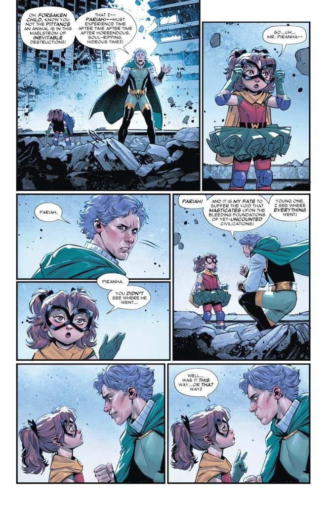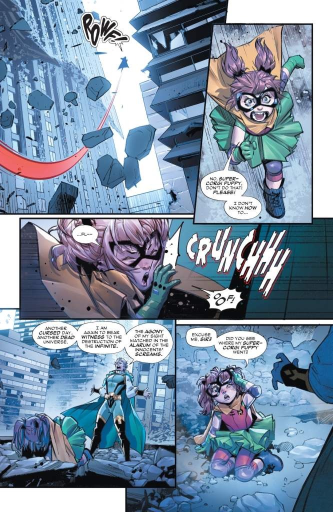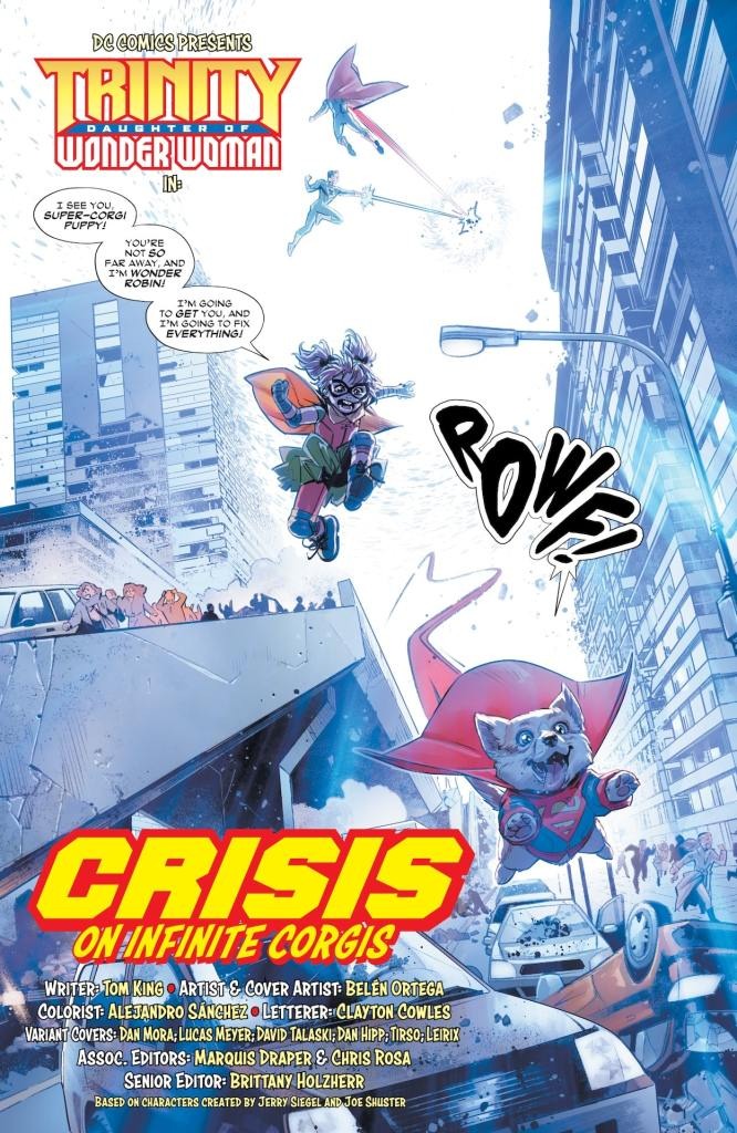 Back by popular demand and now with her own miniseries… Trinity! It all begins when the daughter of Wonder Woman embarks on her most dangerous adventure yet to enter the timeline to find her father. As the young hero knows, messing with time has its consequences, but that doesn’t mean she learned her lesson the first time. Things are about to get ruff and the Super Sons have gone to the dogs. Prepare for a Crisis of Infinite Corgis!