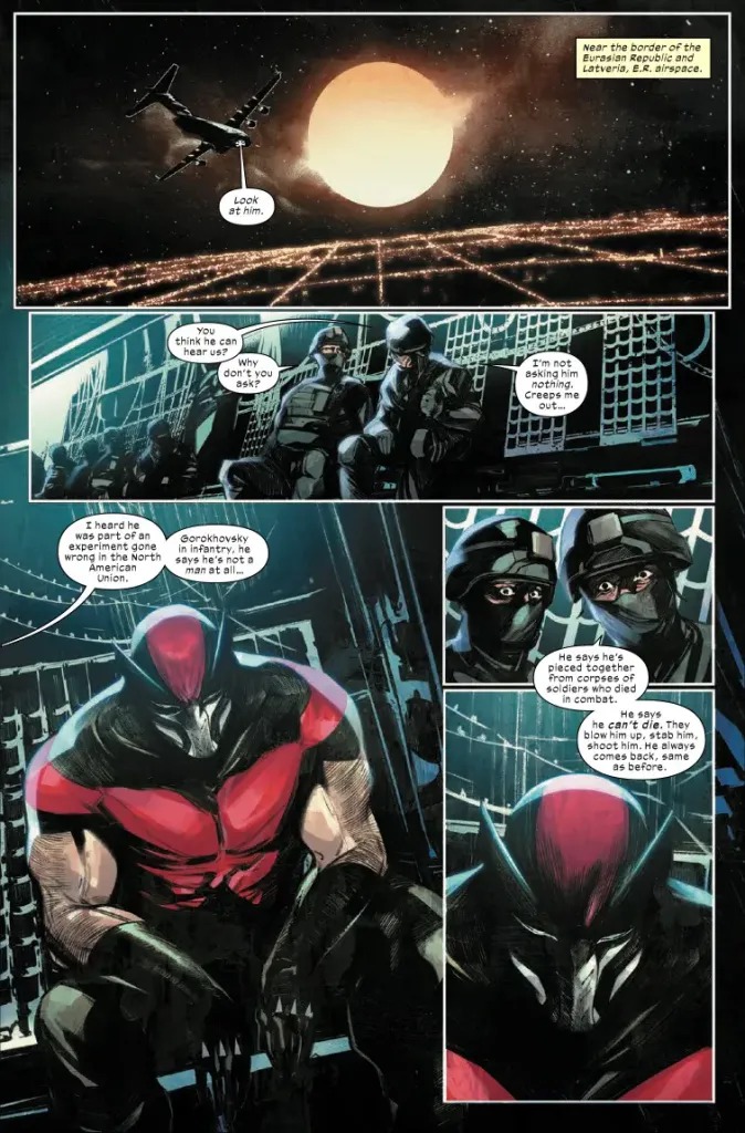 THE MAKER’S ULTIMATE WEAPON! From rising star Chris Condon (THAT TEXAS BLOOD) and MOON KNIGHT powerhouse artist Alessandro Cappuccio comes the story of the ULTIMATE WOLVERINE! In order to maintain control of their corner of the Maker’s world, three members of his council – Magik, Colossus and Omega Red – deploy their most lethal asset: The Winter Soldier! But WHO is the weapon behind the mask?
