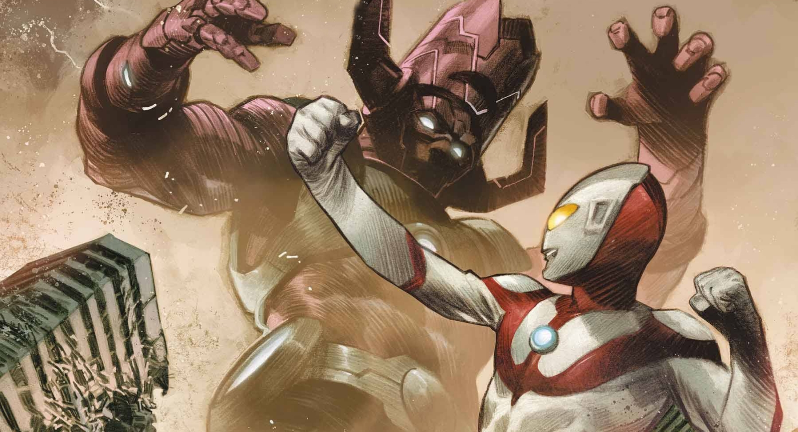 It’s finally here, the battle to end them all, as the fate of the cosmos hangs in the balance! In one corner – the devourer of worlds, Galactus, AND HIS NEW HERALD, ALIEN ZARAB! In the other, the assembled forces of Captain America’s Avengers and Ultraman’s Ultra Guard! But can our heroes really hope to take on such an apocalyptic threat… and even if they can, what consequences might that have for multiple universes?