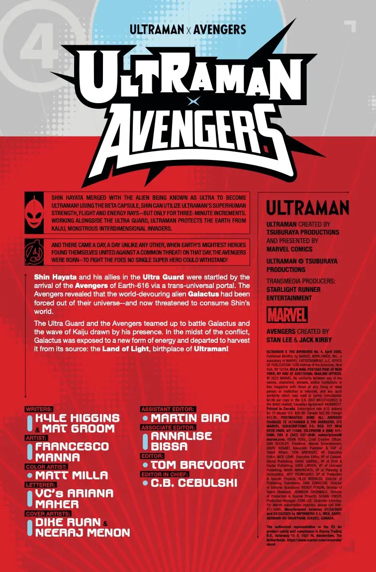 Ultraman X Avengers #4 is out on Wednesday, February 26th 2025.