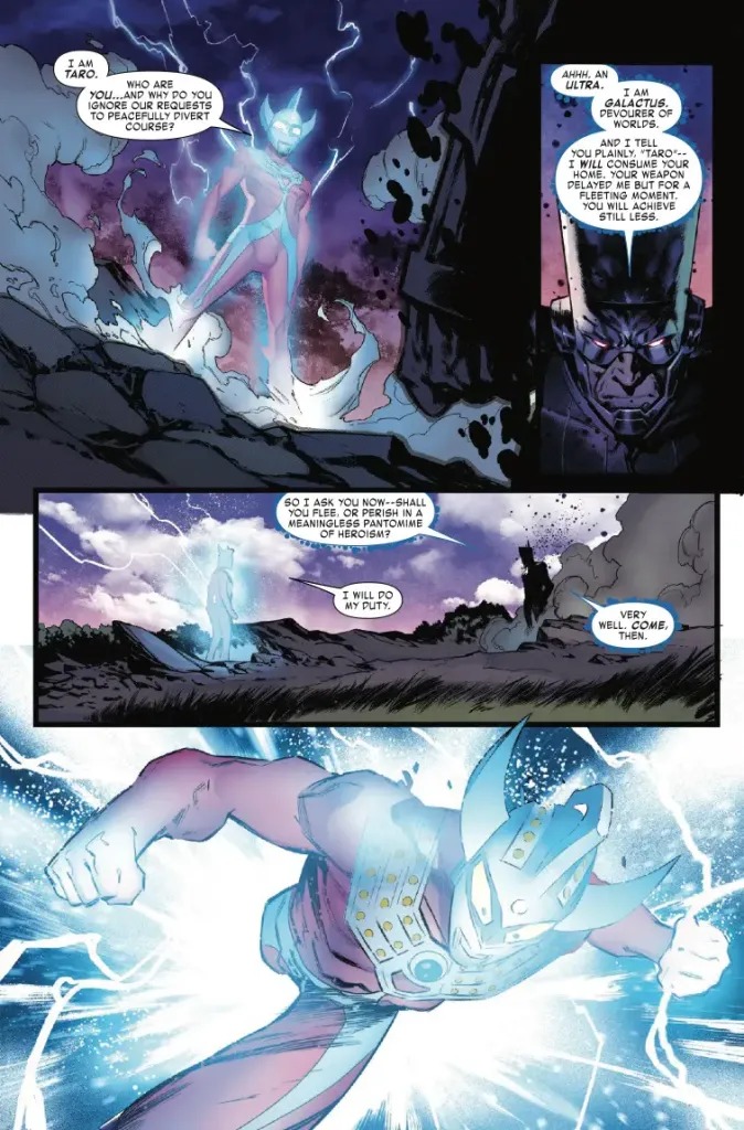 The Avengers and the Ultra Guard take to the stars in pursuit of Galactus! Can they stop the devourer of worlds before he reaches his terrible destination? What villainous force is vital to their last-ditch plan? And which hero comes in with a surprise assist…in a giant mech? Find out in this conclusive chapter of the epic crossover event, ULTRAMAN X AVENGERS!