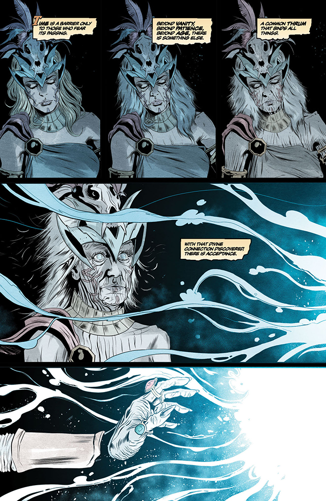 Within the decaying ruins of Admir-Yun, Sonja and her unexpected new companion search for the answers to their strange shared fate. What they find within could change the Hyborian Age forever!