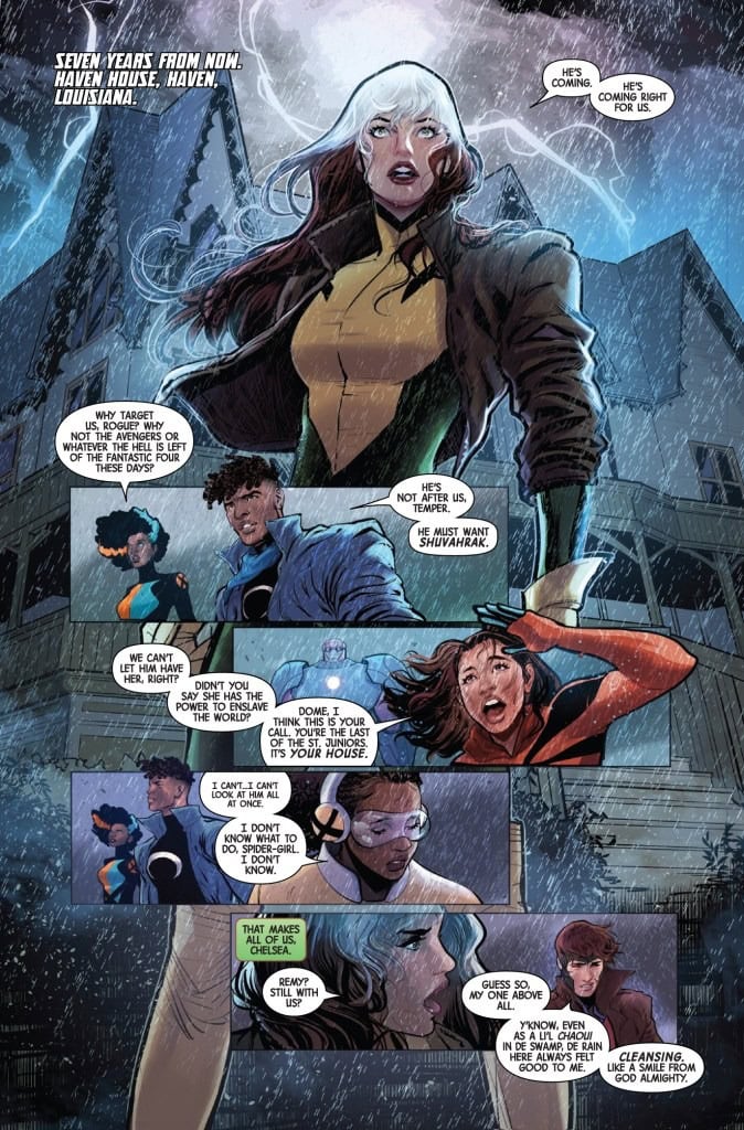 X YEARS LATER and the Uncanny X-Men have been shattered by loss and tragedy and scattered to different locations around the world. At Haven House, only three remain — wounded, grieving and guarding the portal to the terrifying PENUMBRA. Can they stop the thundering darkness that has lurked below the surface for centuries, screaming to break free? Or will they fail and watch a vengeful god bring an army of tormented souls to the surface, crying for mutant blood?
