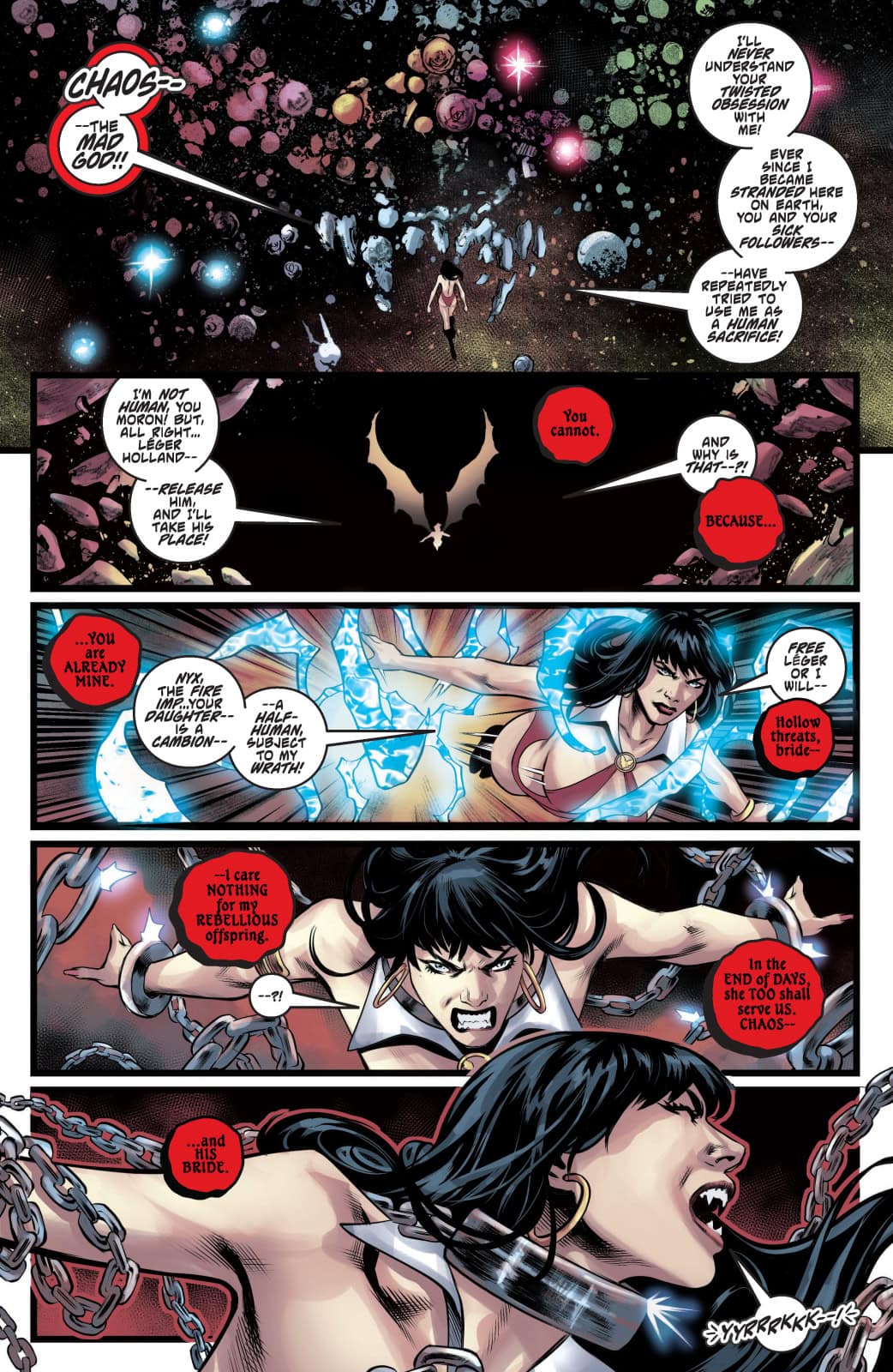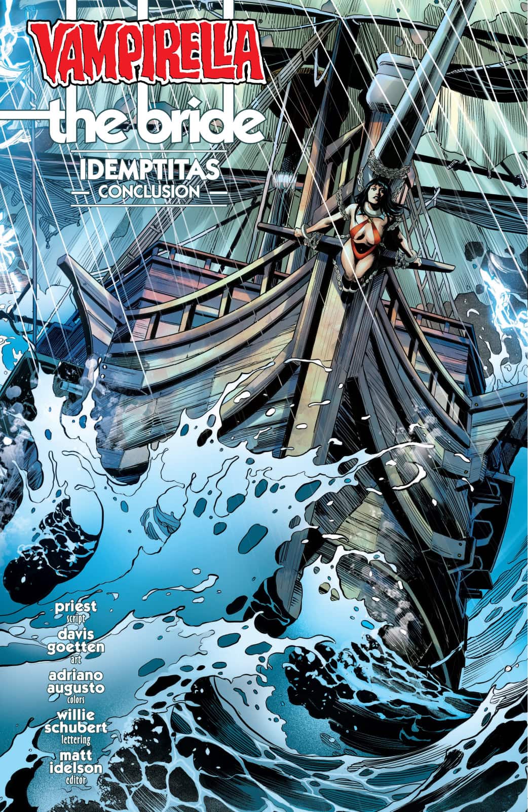 Weighty philosophers CHRISTOPHER PRIEST and DAVIS GOETTEN gaze into the abyss in VAMPIRELLA #10 — leavened by reassuringly refined covers from LUCIO PARRILLO, DERRICK CHEW, JOSEPH MICHAEL LINSNER, ELIAS CHATZOUDIS, and cosplay by RACHEL HOLLON!