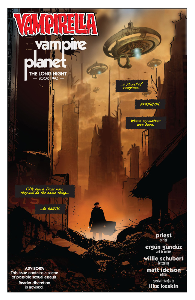 The powerhouse writer and artist team of CHRISTOPHER PRIEST and ERGÜN GÜNDÜZ bring new depths to the Daughter of Drakulon in Part Two of “The Long Night” — burnished by starkly beautiful covers from LUCIO PARRILLO, GREG LAND, JENNY FRISON, ELIAS CHATZOUDIS, and cosplay by RACHEL HOLLON!