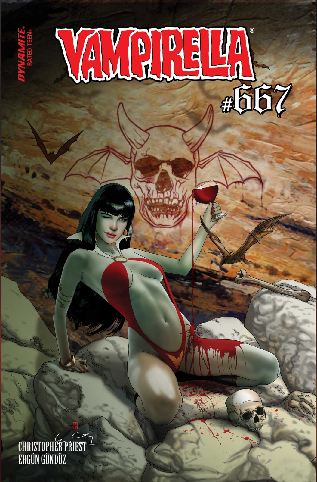The acclaimed creative team of writer CHRISTOPHER PRIEST and artist ERGUN GUNDUZ are joined by fan-favorite cover artists LUCIO PARRILLO, FELIPE MASSAFERA, and CARLA COHEN for this ongoing celebration of Vampirella’s six decades in comics in Vampirella #667- continuing the series’ legacy numbering that reflects all of Vampi’s previous appearances in print. This special 40-page issue also includes six bonus pages from Vampirella: Interstellar that tie into a major story twist!