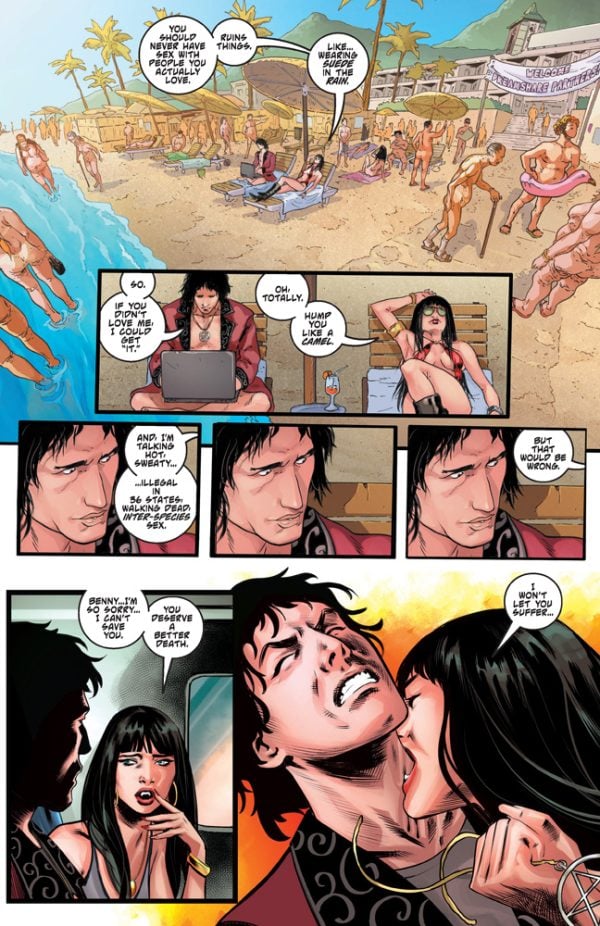 In this issue: Vampirella’s best and most trusted friend has seemingly returned from the grave. But is he “real” — an actual, sentient life form? Or is he merely an automaton crafted by the living algorithm ARIS, sent to complicate Vampirella’s own struggle to determine if she herself is an actual person?
