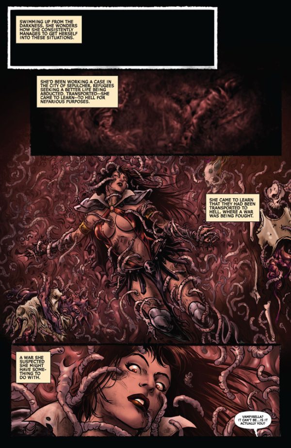 Life in Sepulcher City can seem like Hell on Earth, but it pales in comparison to the real thing something that Vampirella quickly discovers after she is transported against her will into the Inferno!