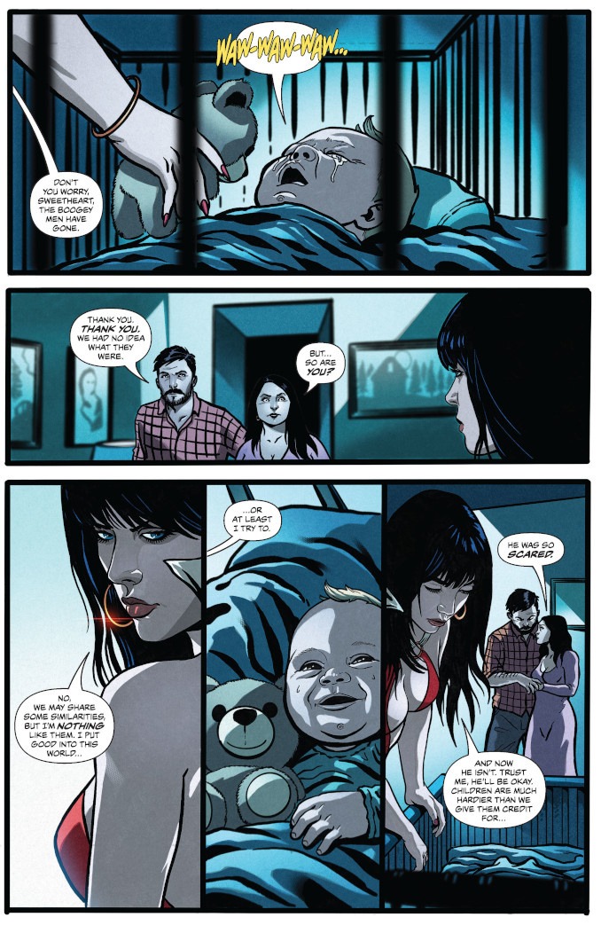 When Vampirella learns of a paranormal serial killer targeting the city’s vulnerable youth, she takes it upon herself to confront the mysterious Aevum about the predator’s true identity – and finds herself wrestling once again with the question that has shadowed her entire life: When does a gift becomes a curse?
