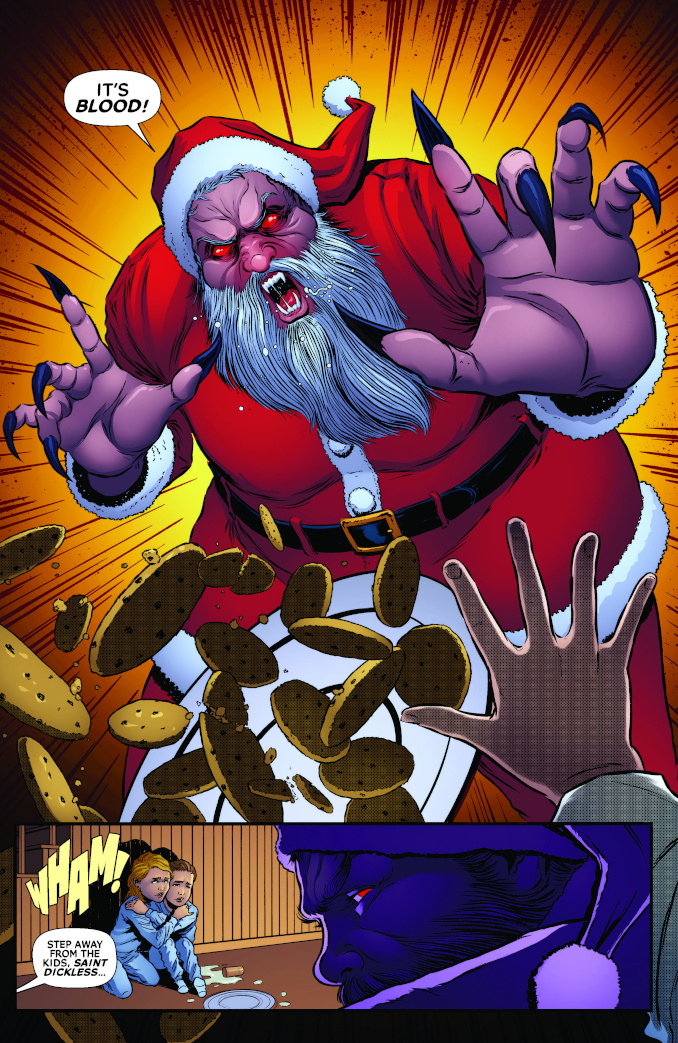 She’s faced it all over the years: demons, vampires, her deranged sister, her deranged mother, but has she ever faced… the Naughty List?Legendary writer Frank Tieri spins a decidedly dark “helliday” tale as Vampirella faces the sacourge of the North Pole! Featuring art by Mariano Benitez Chapo, and a cover by Jae Lee!