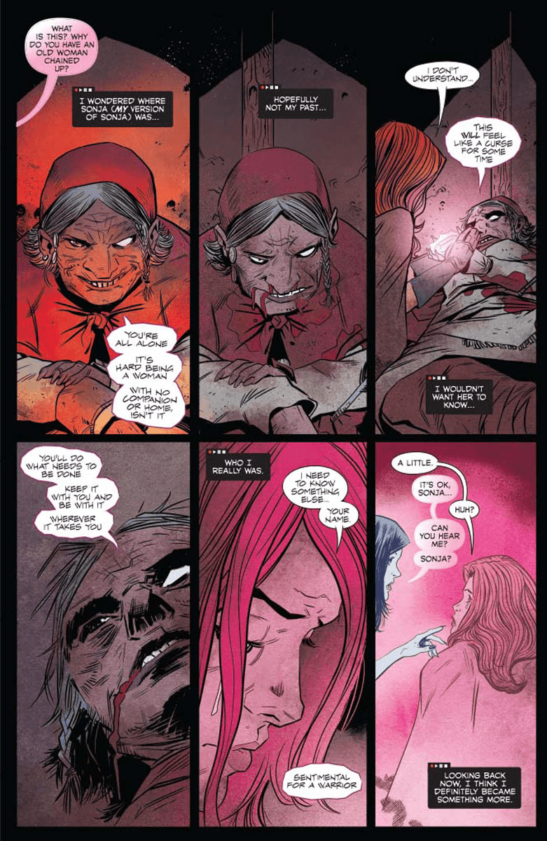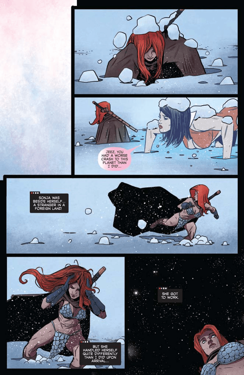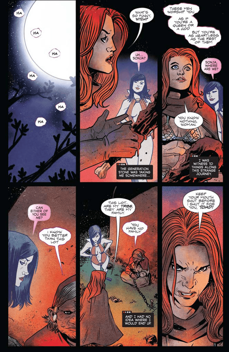 Reunited! After months apart (or was it days? Hours? Minutes? Time travel’s weird), Sonja The Red and Vampi have found one another… and just in time, as there’s an evil lurking in the timestream… something big, something mean, something neither of them could handle alone…