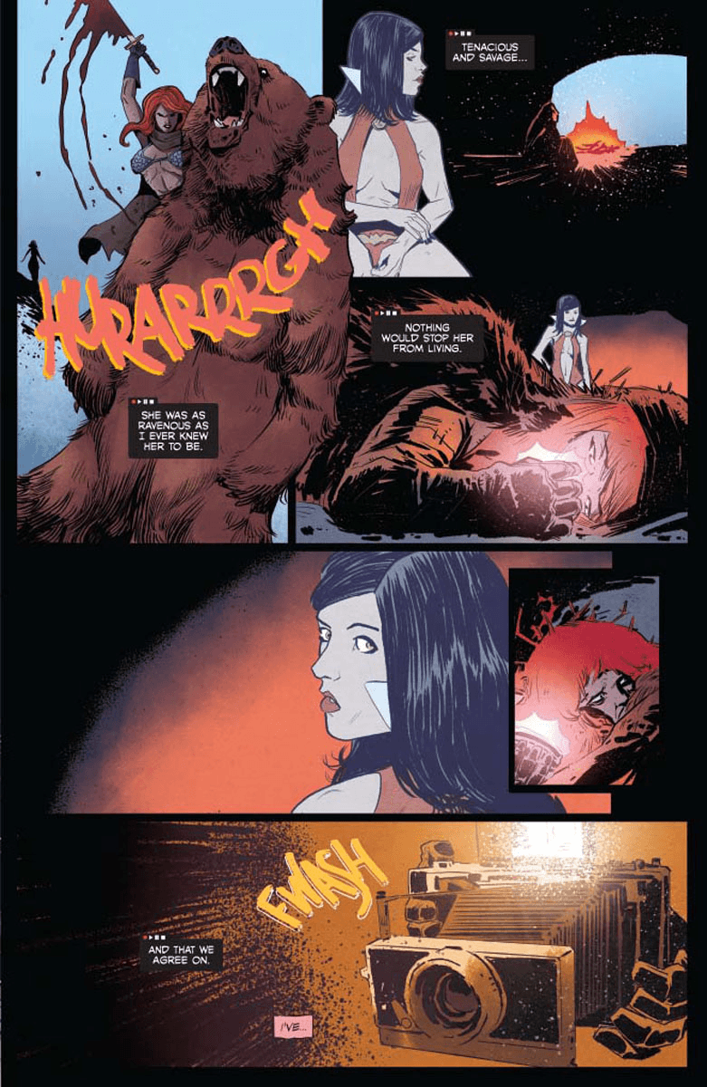 Vampirella/Red Sonja #6 is out this Wednesday, and you can take a look at a preview of the issue here courtesy of Dynamite Entertainment…