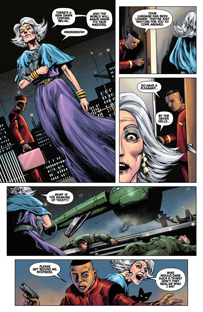 It has been fifteen years since the death of Mistress Nyx and the world in slowly recovering, but this isn’t a world that we’ve ever seen before. This is a world where the natural, and the supernatural have merged to create a dangerous new place — a world very much in need of Vampirella. Whispers on the street of Sepulcher City talk of evil on the rise. The Cult of Chao is up to something big – but what? A secret meeting of the Cult’s highest ranking officials is about to occur in a Romanian castle where their plans will be revealed, a meeting that Vampirella must attend — but how?