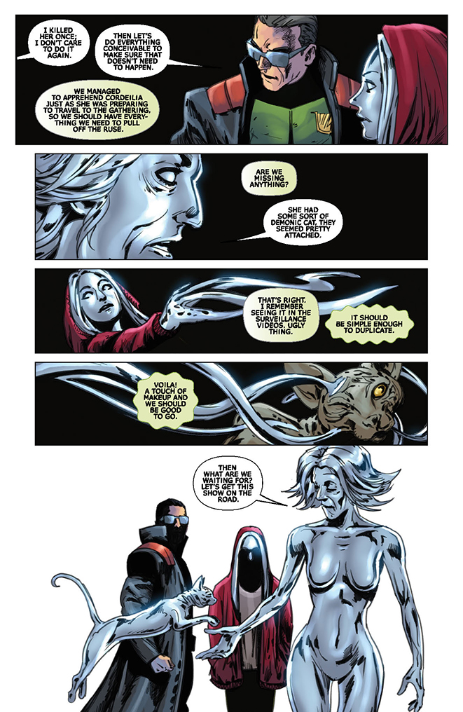 It has been fifteen years since the death of Mistress Nyx and the world in slowly recovering, but this isn’t a world that we’ve ever seen before. This is a world where the natural and the supernatural have merged to create a dangerous new place-a world very much in need of Vampirella. Wearing the guise of a Chaos Cult leader, Vampirella has infiltrated a special meeting of the highest order. What plans does the insidious demon cult have for the unsuspecting world and what do they have to do with the return of one of Vampirella’s most dangerous enemies, the blood red Queen of Hearts? Enter the world of Vampirella Strikes under a series of amazing artist by returning superstar artists Lucio Parrillo, Stephen Segovia, Junggeun Yoon, plus another stunning cosplay cover featuring Rachel Hollon!